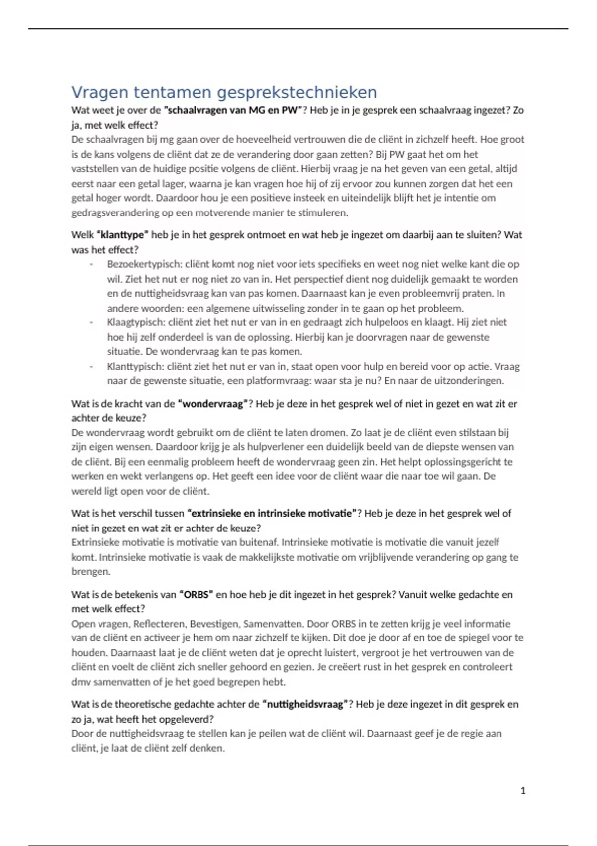 In deze bundel tref je twee overzichtskaarten. Een overzichtskaart is van progressiegericht werken en een overzichtskaart is van motiverende gespreksvoering. Bij deze overzichtskaarten zitten voorbeeldvragen. Daarnaast bestaat deze voordeelbundel uit een document waarin ik de vragen die bij het tentamen gesteld kunnen worden uitgewerkt heb.