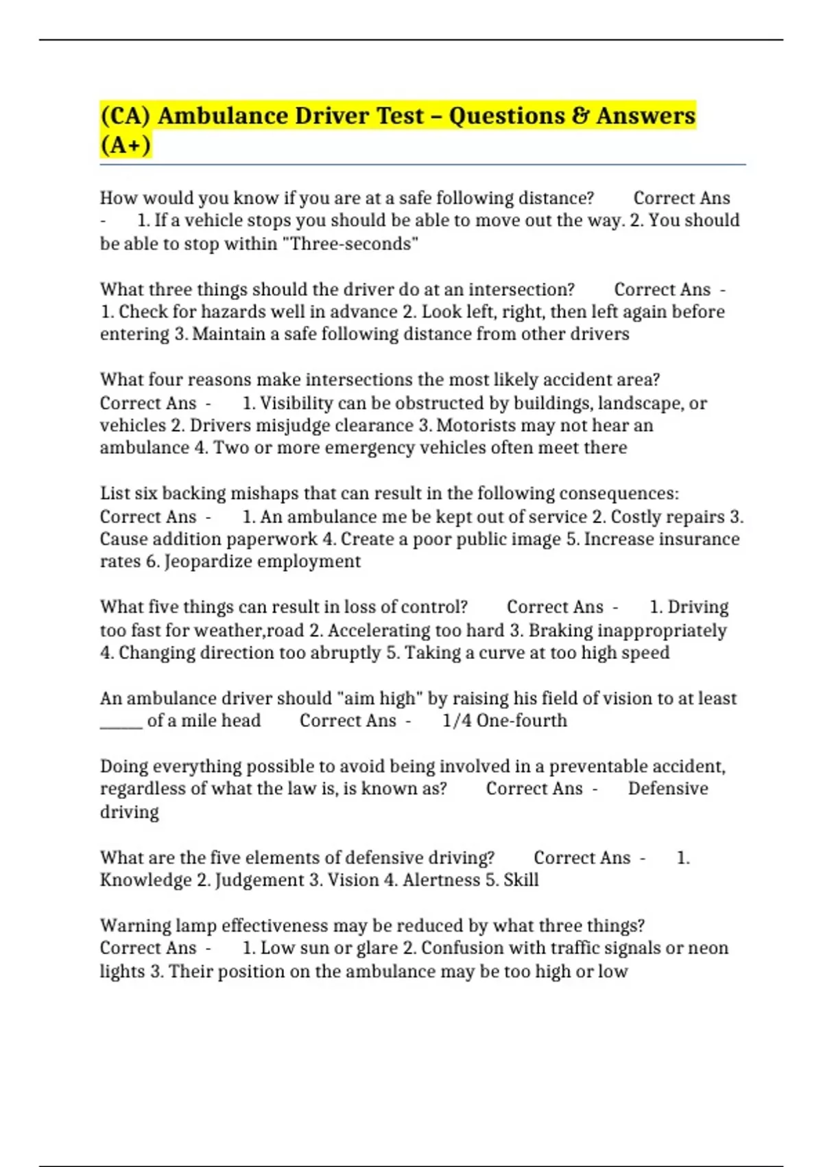 BUNDLE::- CALIFORNIA AMBULANCE DRIVER CERTIFICATE EXAMS