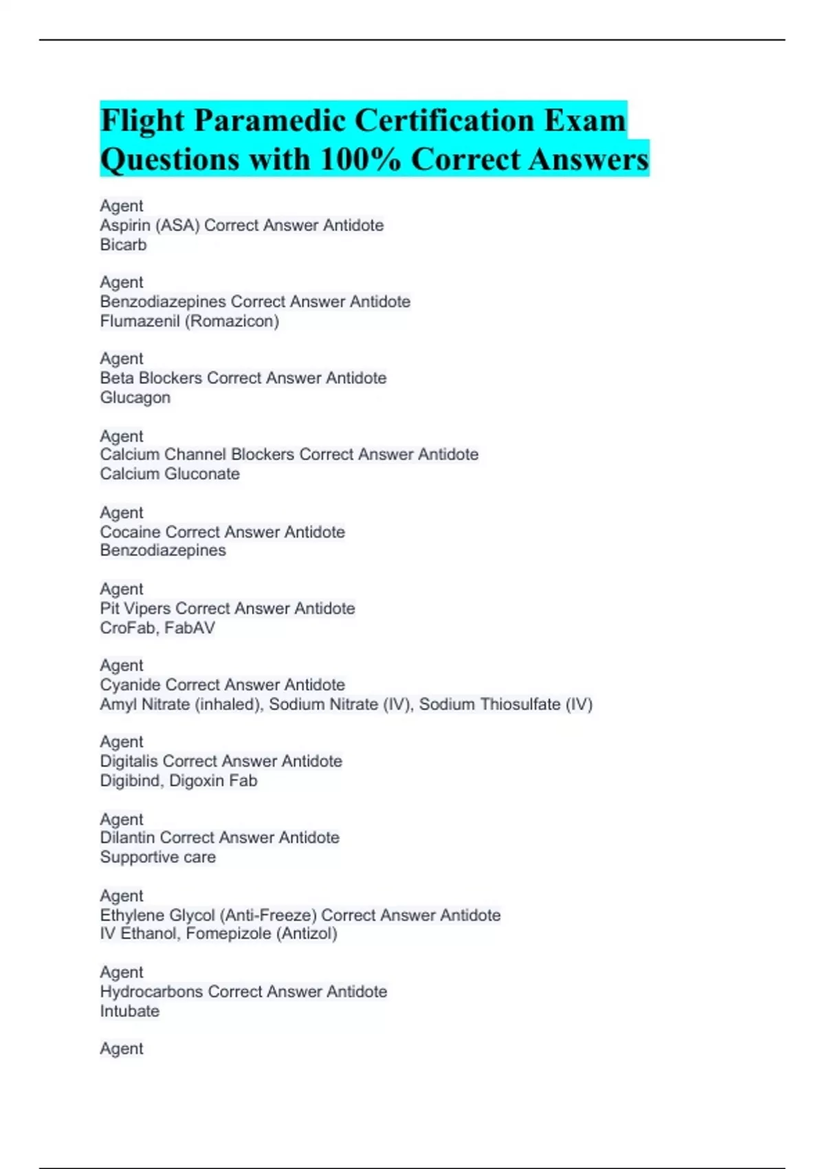 Flight Paramedic Certification Exam Questions with 100% Correct Answers Flight Paramedic Certification Questions with 100% Correct Answers Flight Paramedic Questions with 100% Correct Answers Critical Care Paramedic (Kyle Faudree s Flight Paramedic Certification) Study Questions with Correct Answers (A+ Graded)