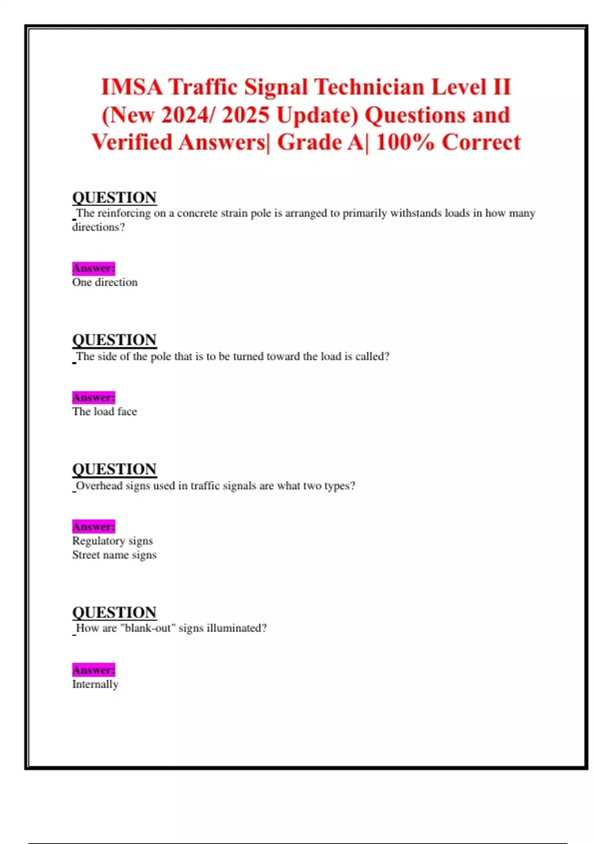 IMSA Traffic Signal Technician Level II| Questions and Verified Answers| Grade A| 100% Correct (2024/ 2025 Upsates BUNDLED TOGETHER WITH COMPLETE SOLUTIONS)