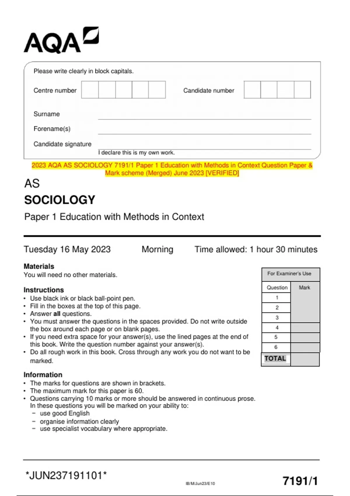 2023 AQA GCE Law : ALL PAPERS