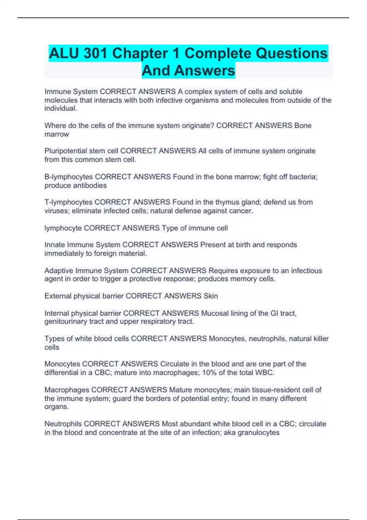 ALU 301 Chapter 1 Complete Questions And Answers ALU 301 Final Exam Questions And Answers Solved 100% Correct!! ALU 301 Exam Questions And Complete Solutions | A+ Graded ALU 301: Chapter 2: (Inflammatory Bowel Disease) Exam Complete Questions And Answers