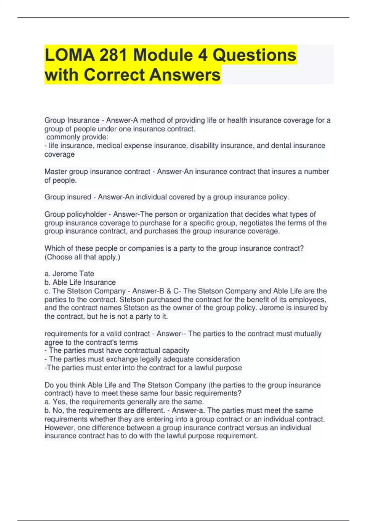 Bundle For LOMA 281 Exam Questions with Correct Answers