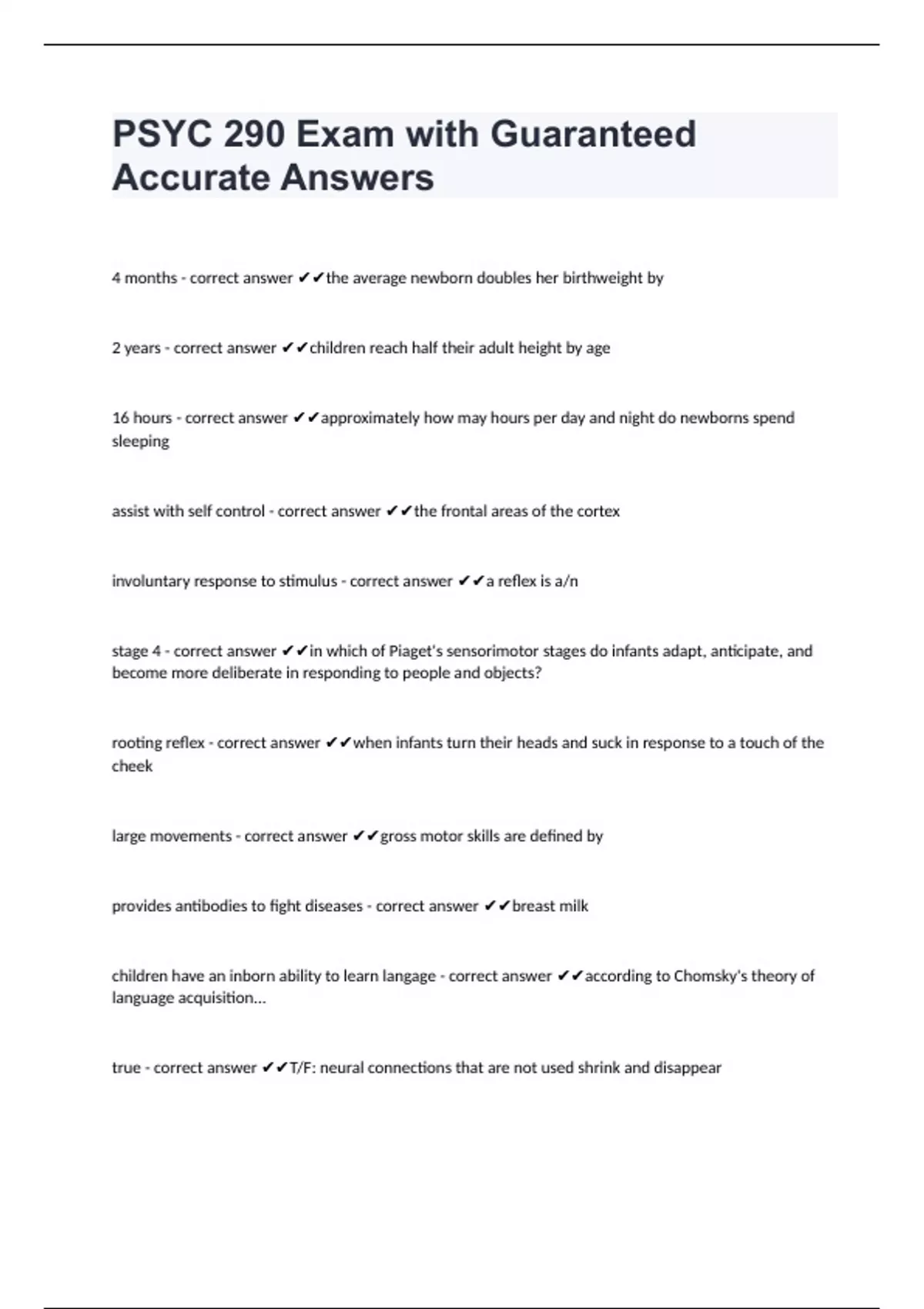 PSYC 290 BUNDLED EXAMS WITH GUARANTEED CORRECT ANSWERS