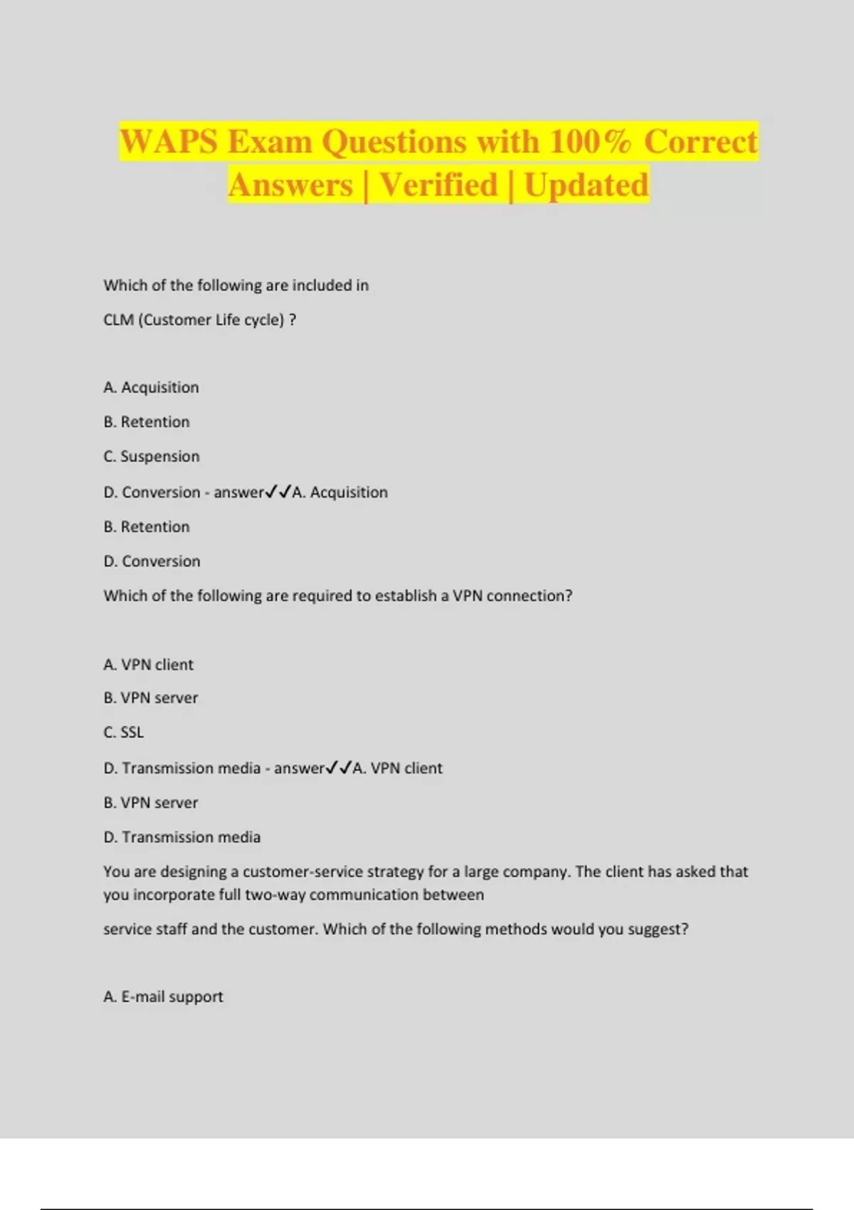 WAPS Exam Questions with 100% Correct Answers | Verified | Updated