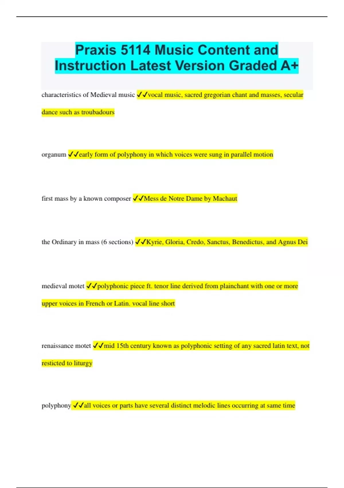 Music Praxis 5113 Bundled Exams Questions and Answers Multiple Versions (2024/2025) (Complete and Accurate)
