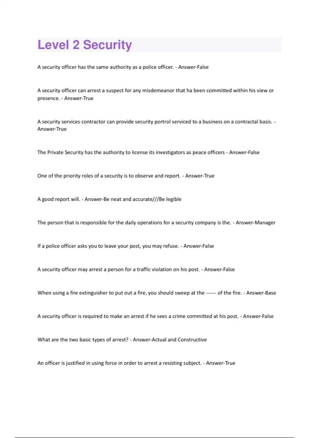 Texas Level 3 (Commissioned) Security Guard Test Review (Questions & Answers) Passed!!