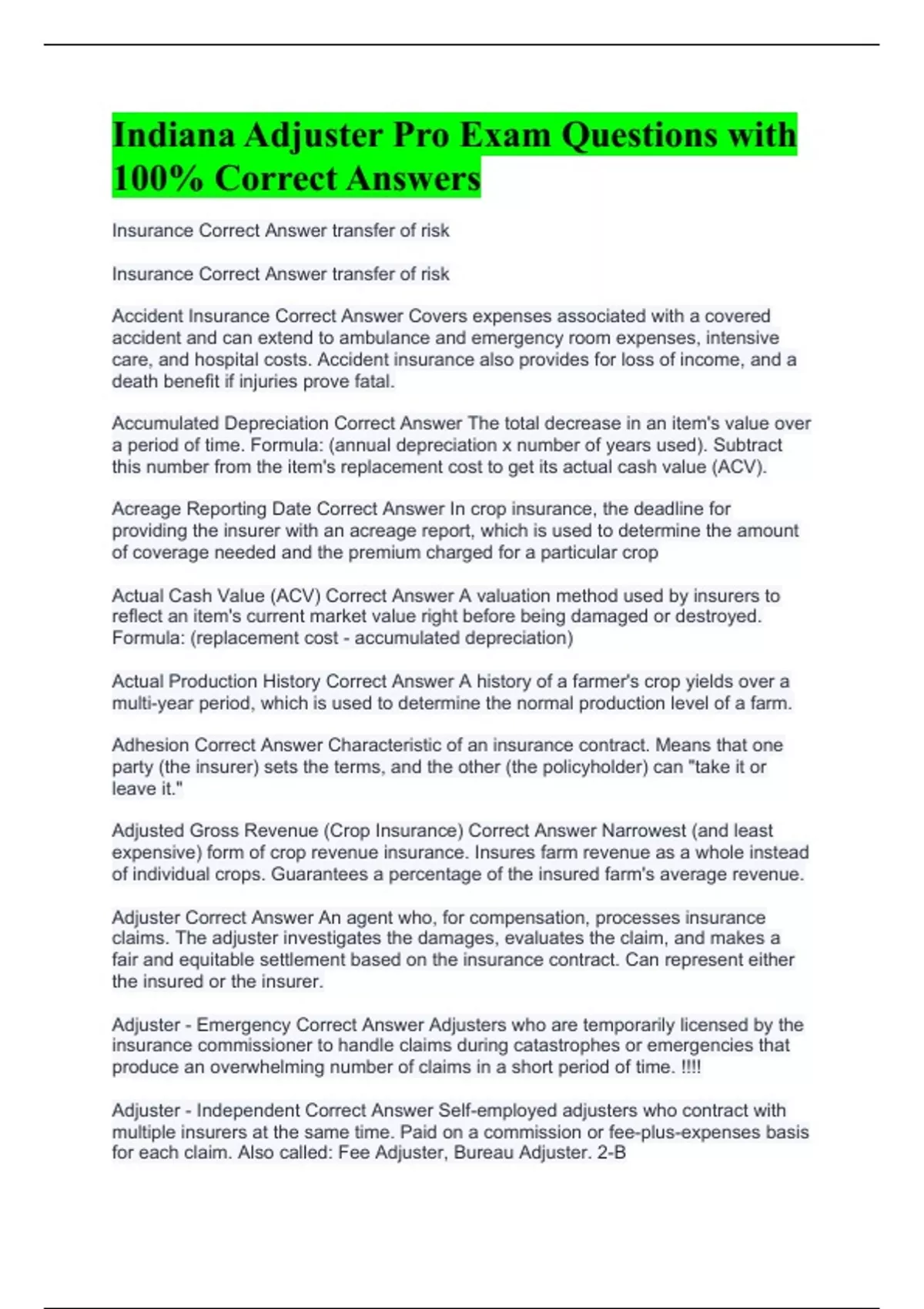 Indiana Adjuster Pro Exam Questions with 100% Correct Answers Bundled Package