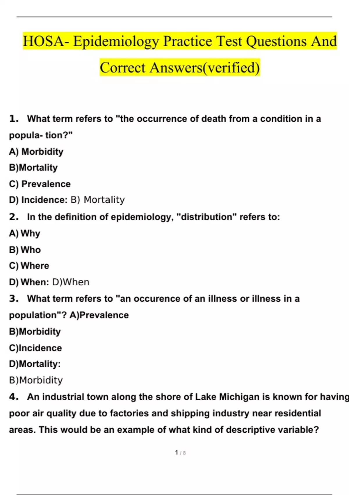 HOSA STUDY BUNDLE PACK SOLUTION (Verified)