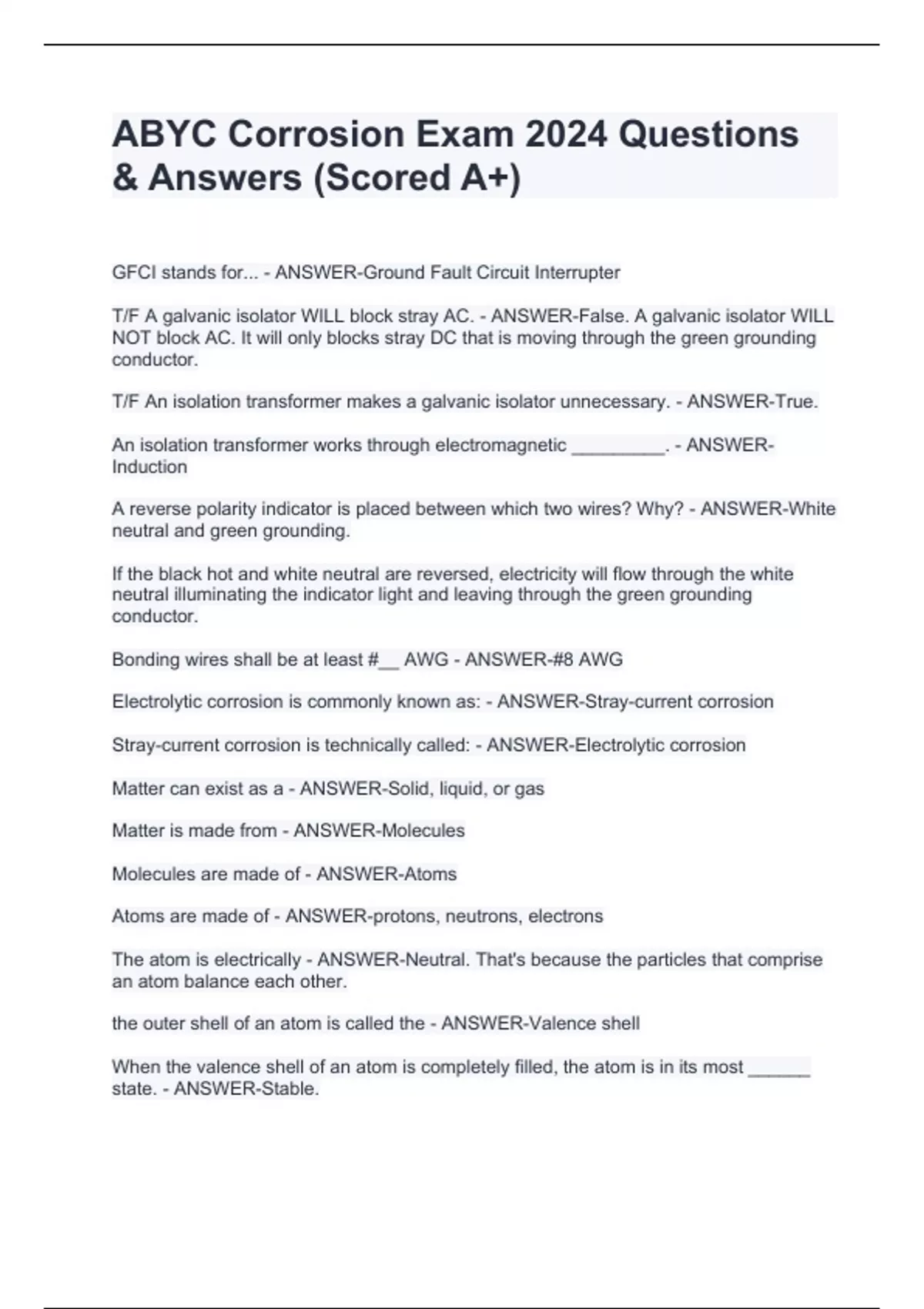 ABYC Corrosion Exam 2024 Questions & Answers (Scored A+)