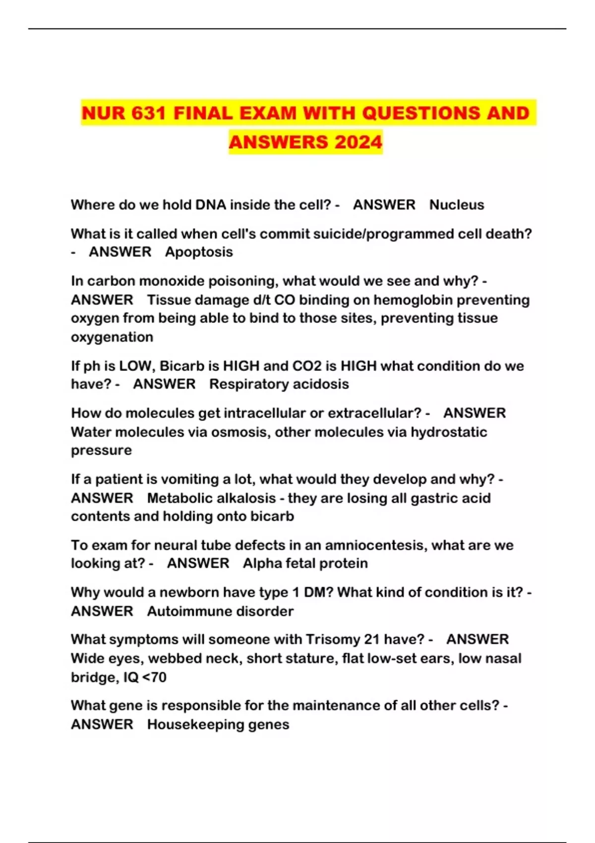 NUR 631 FINAL EXAM WITH QUESTIONS AND ANSWERS 2024
