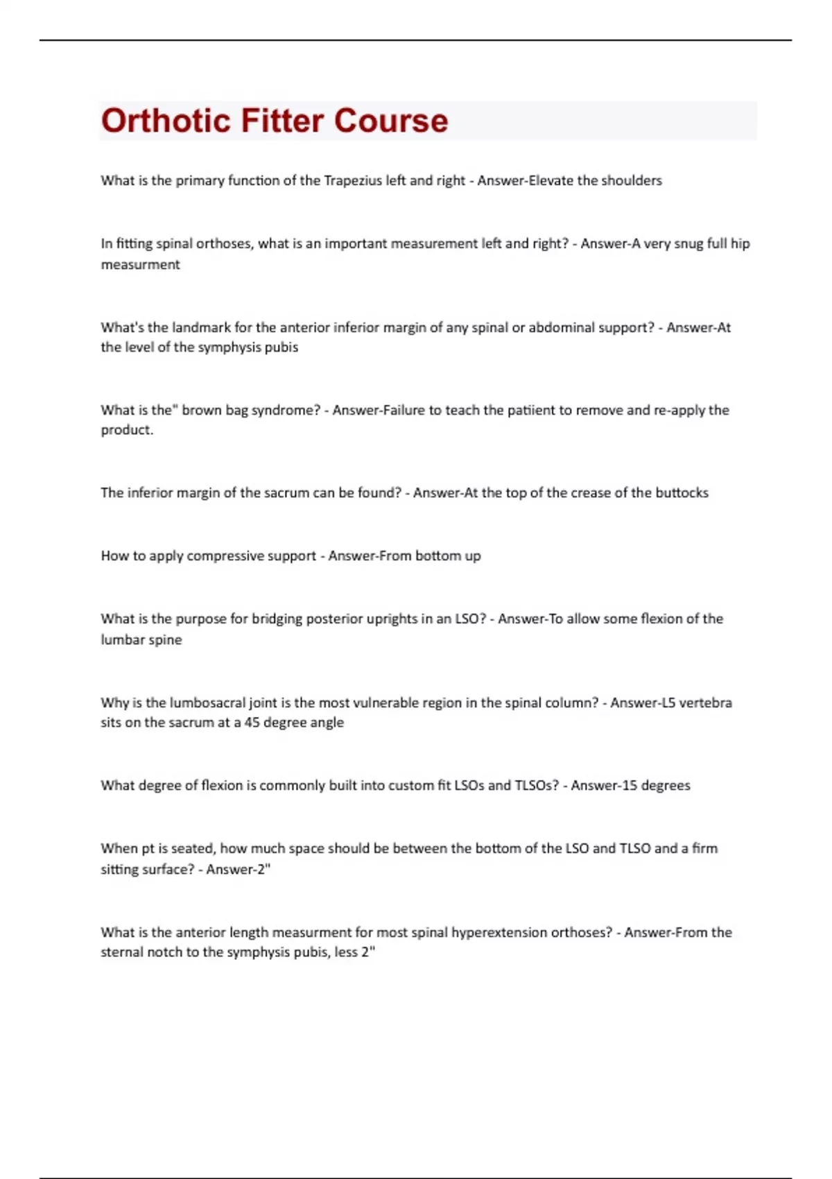 BOC Orthotic Fitter Course Questions With All Correct Answers.