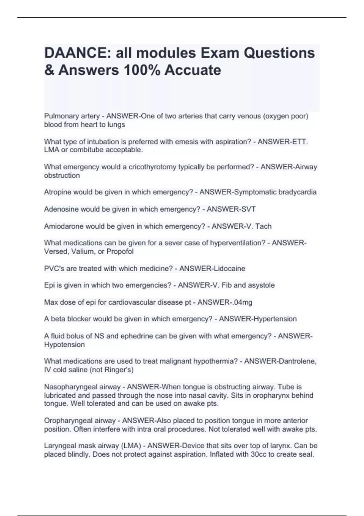 DAANCE STUDY QUESTIONS, Entire DAANCE Glossary, DAANCE drugs Exam With Verified Answers