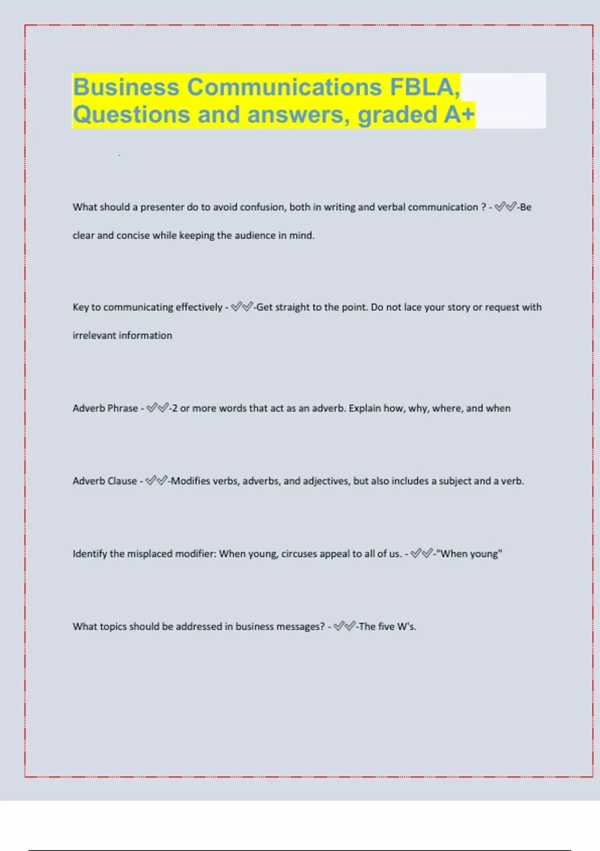 Business Communications FBLA, Questions and answers, graded A+| LATEST EXAM UPDATES| 2024/25 |