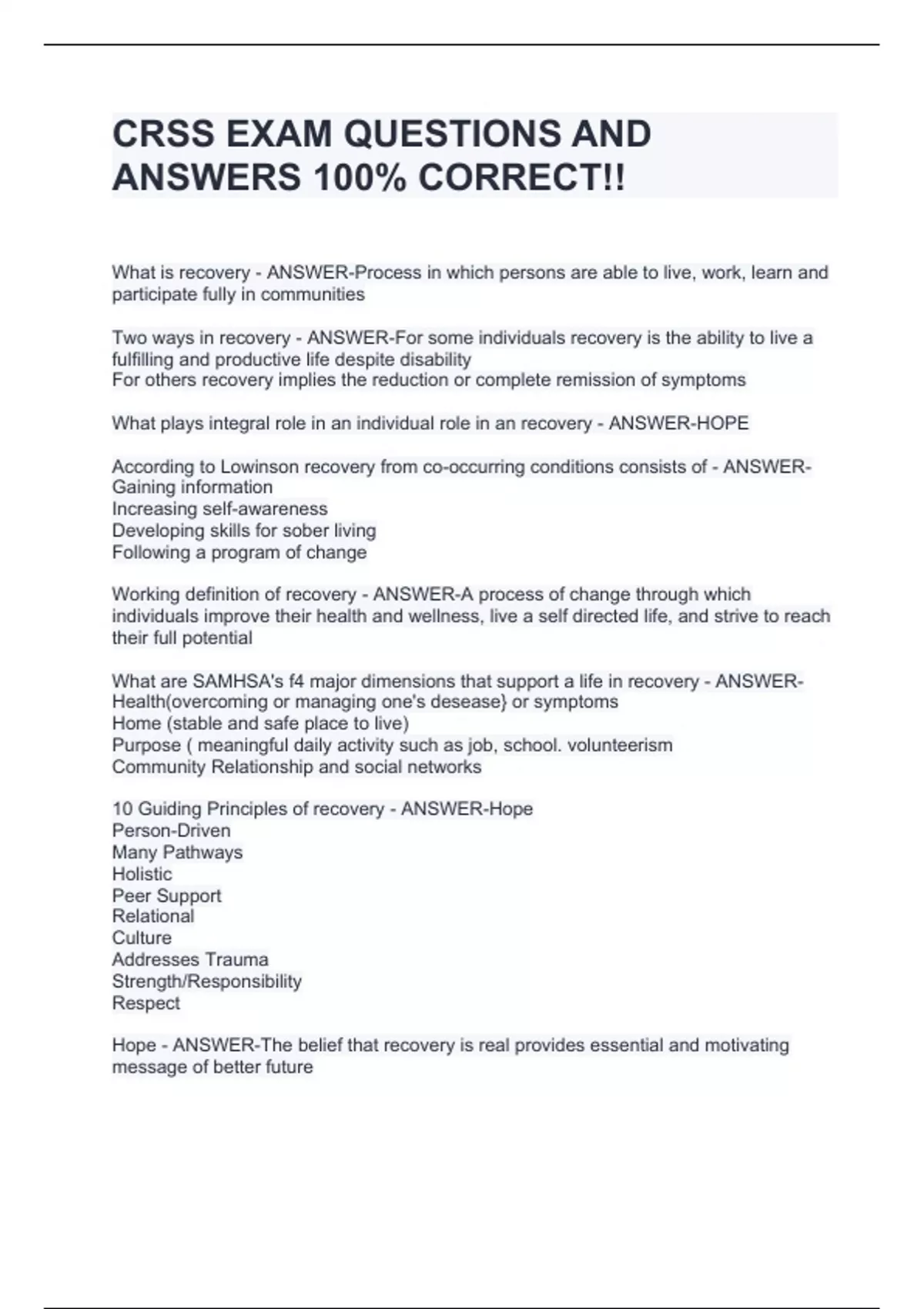 CRSS EXAM BUNDLE| Questions and Answers 100% Correct