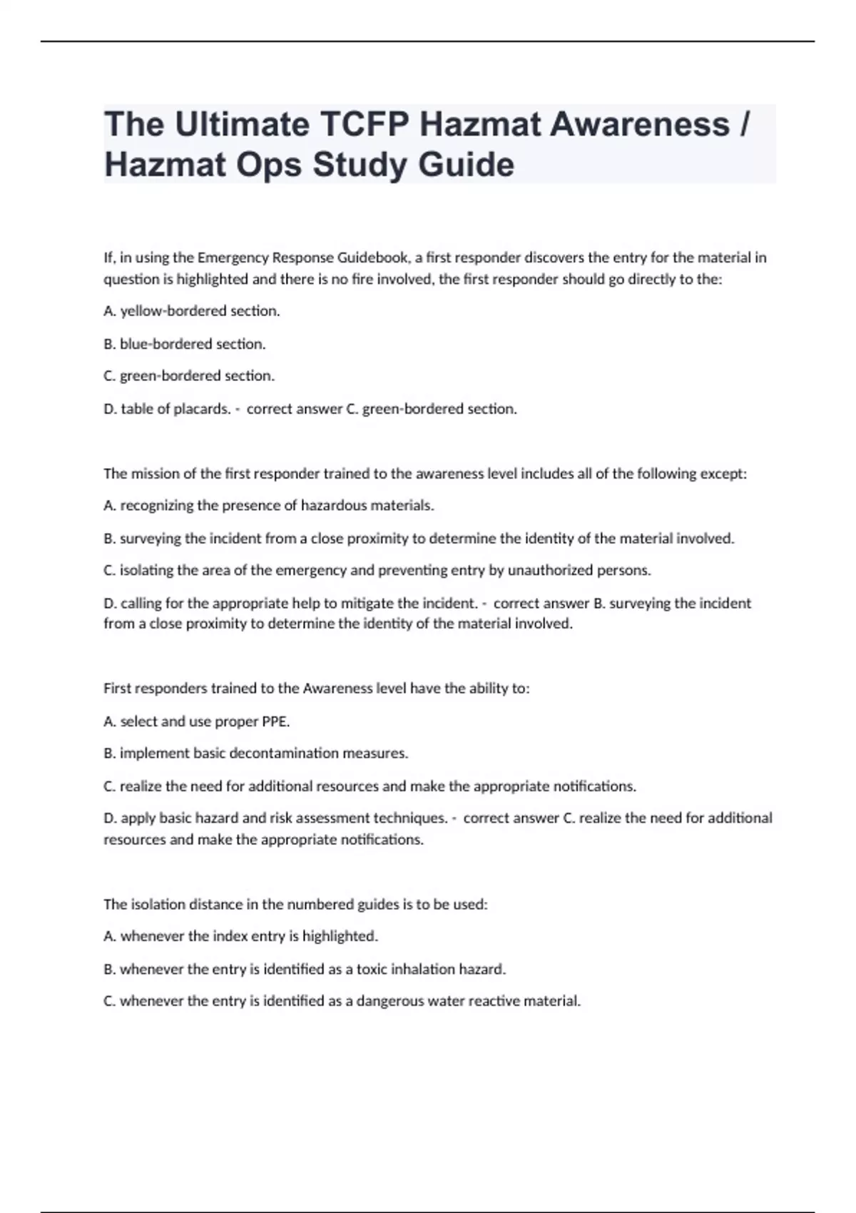 1 Exam (elaborations) AFD Policy F401 State Firefighter Certification correctly answered graded A+ 2024/2025 2 Exam (elaborations) AFD TCFP Misc with answers 2024/2025 3 Exam (elaborations) Randomized Practice Final TCFP FF2 fully solved 4 Exam (elaborations) TCFP - Exam Questions (Revising)2024/2025 already passed