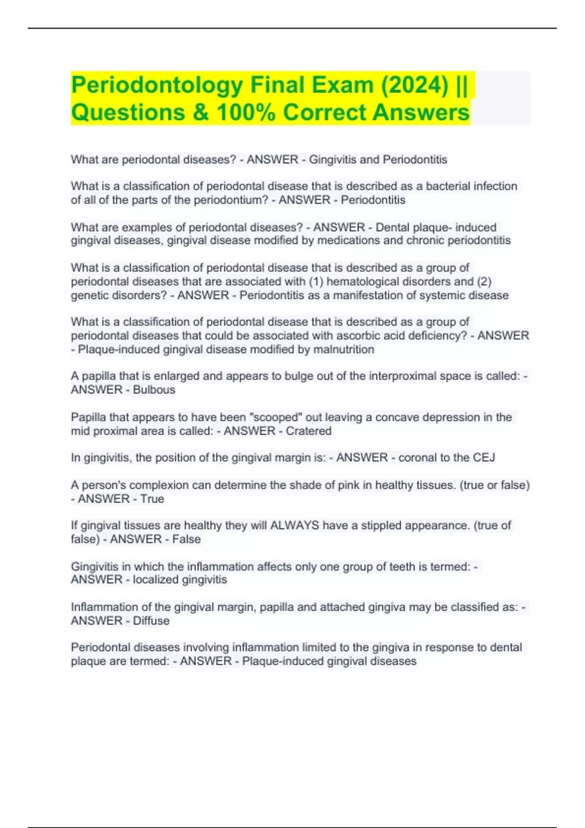 Periodontology Comprehensive Exam BUNDLE (PACKAGE DEAL)|| With Complete Questions & Answers (Graded A+) || Guaranteed Pass!!!