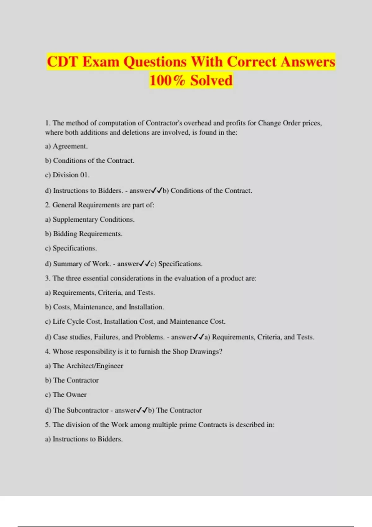 CSI CDT Exam Questions With Correct Answers 100% Solved