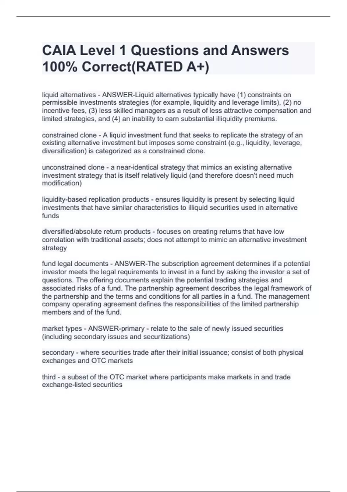 CAIA Level 1 Questions and Answers 100% Correct(RATED A+)