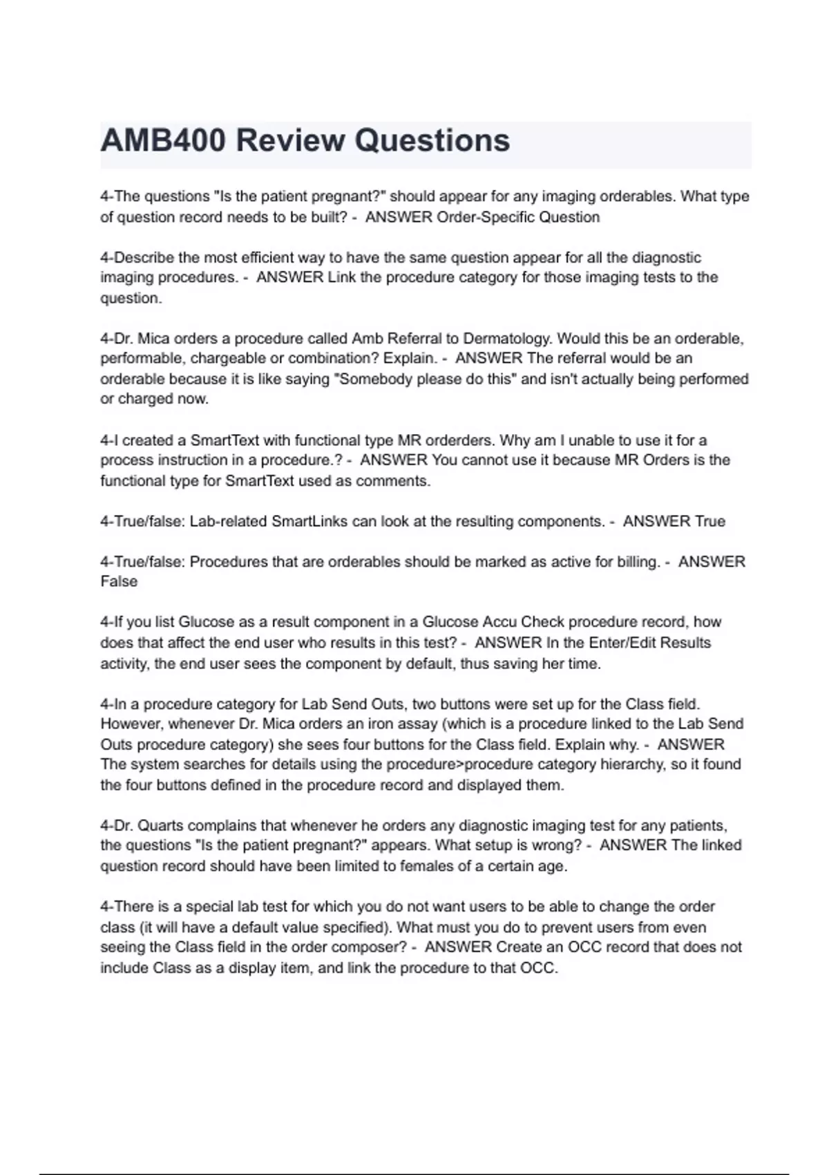 Epic AMB400 Review Questions and Answers 2024( A+ GRADED 100% VERIFIED).