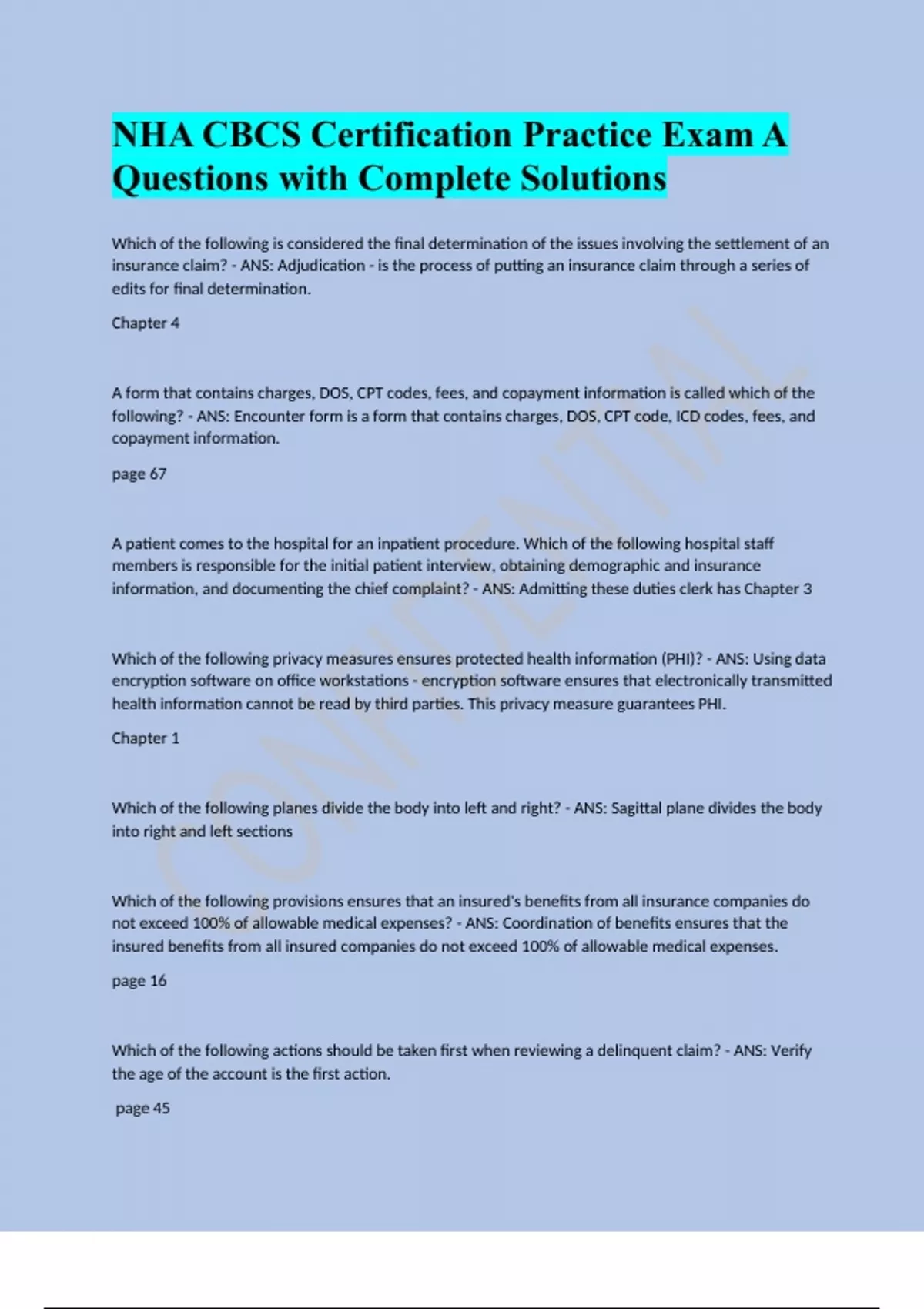 CBCS Certification Billing and Coding Specialist Exam Self Practice Review Questions with Complete Solutions