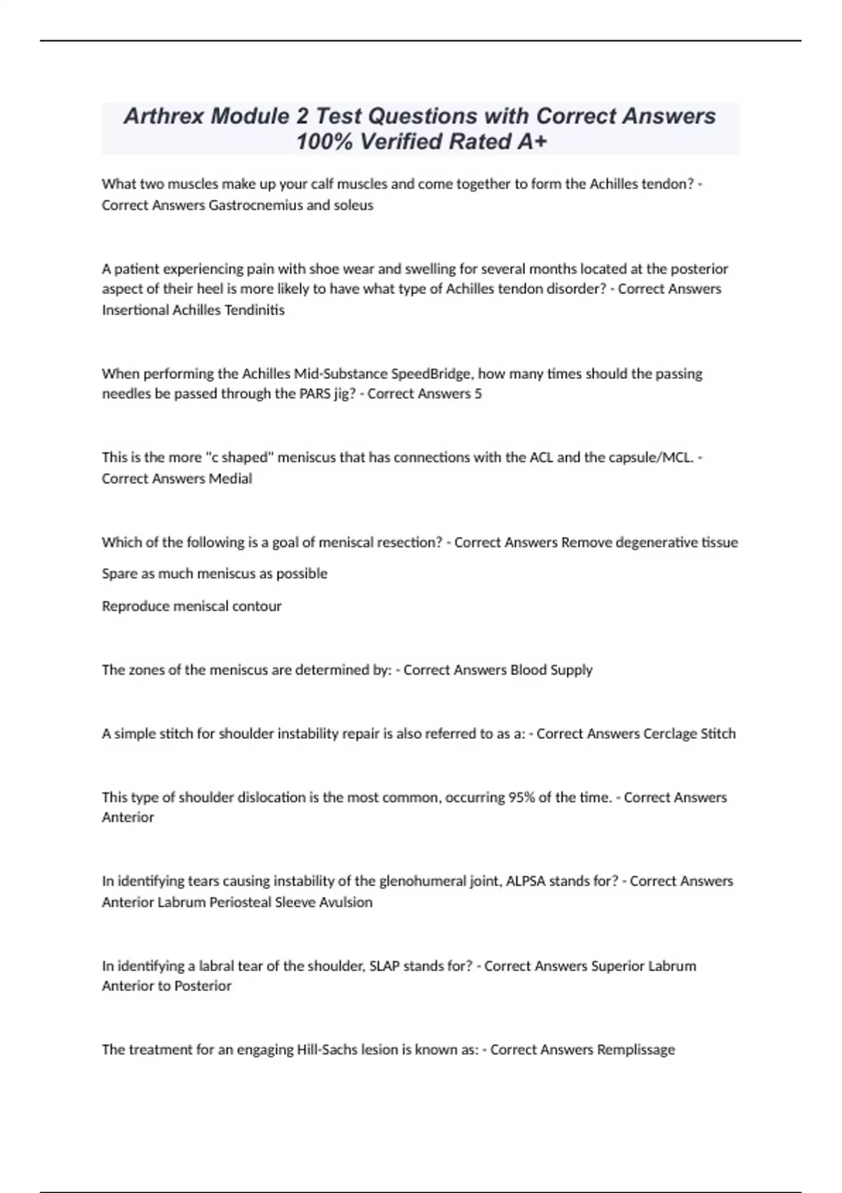 ARTHREX (COMPILED) EXAM PACKAGE DEAL LATEST UPDATE 2024/2025