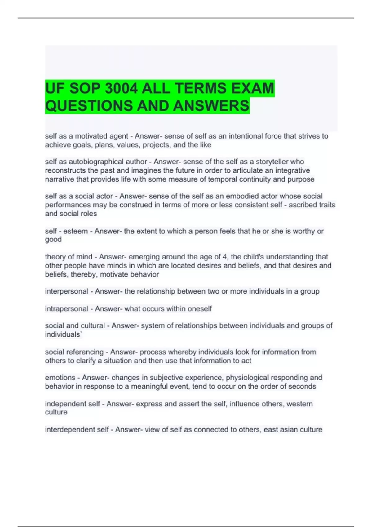 UF SOP 3004 ALL TERMS EXAM QUESTIONS AND ANSWERS