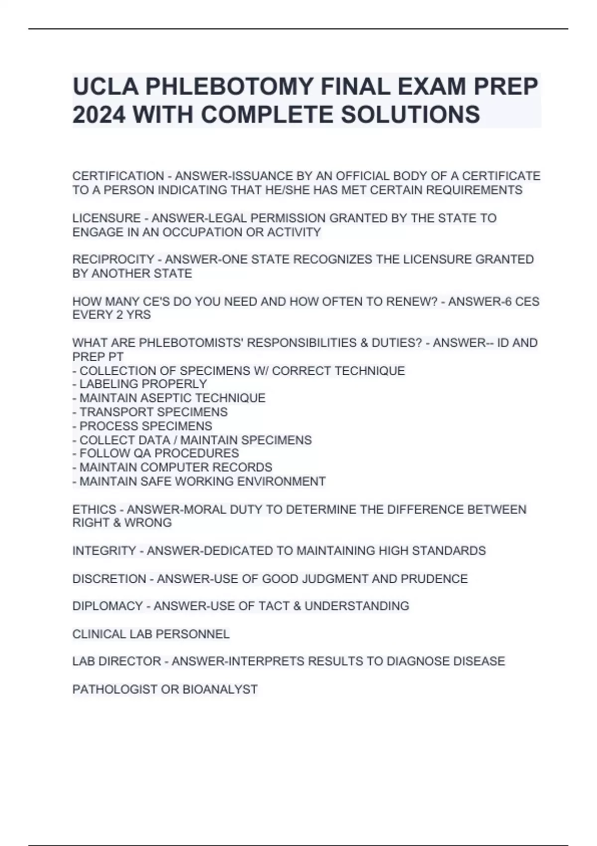 UCLA PHLEBOTOMY EXAM 2024 BUNDLE (PACKAGE DEAL) WITH COMPLETE SOLUTIONS