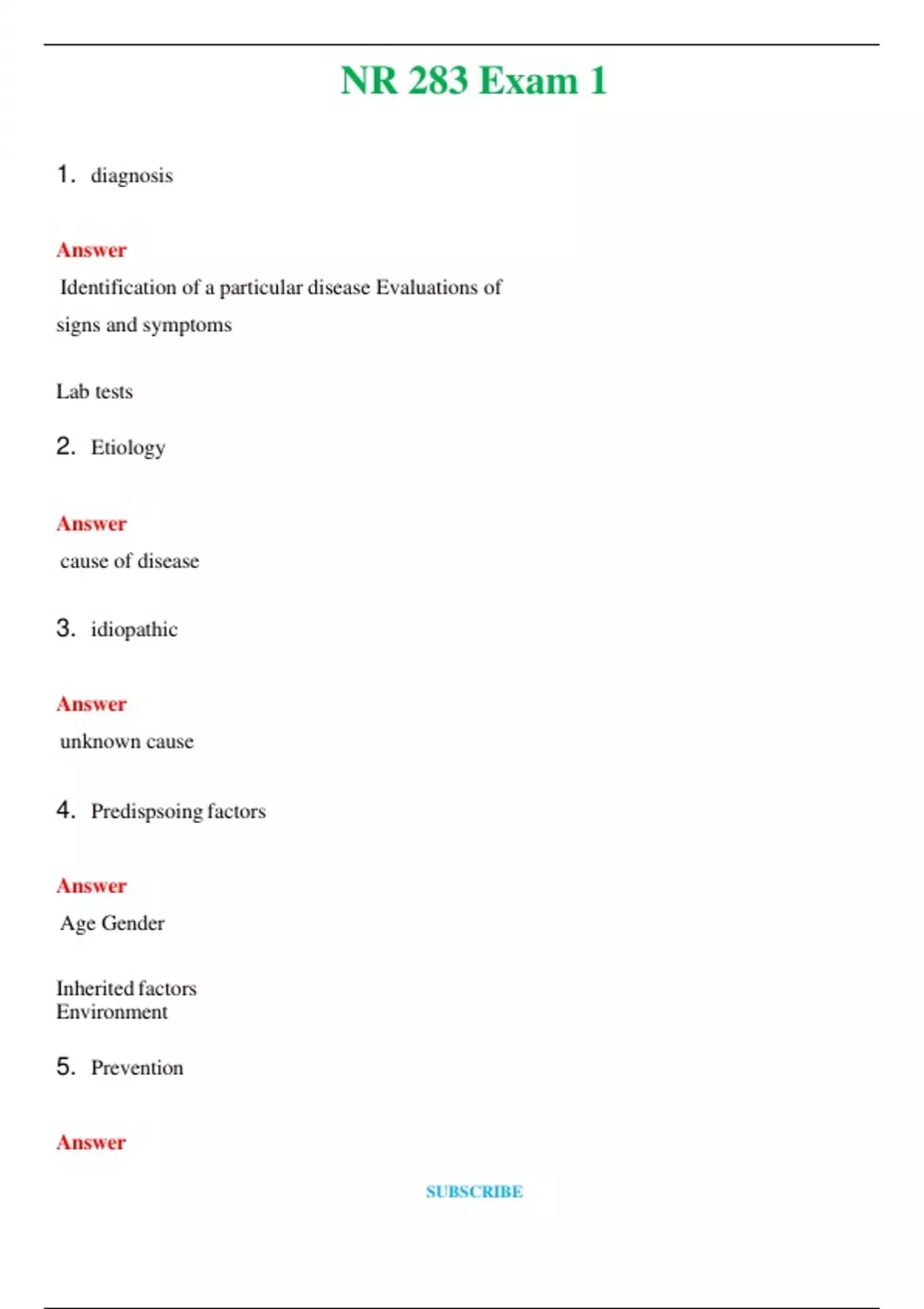 NR 283 Exams Set (Latest 2024 / 2025) Questions and Answers (Verified Answers)