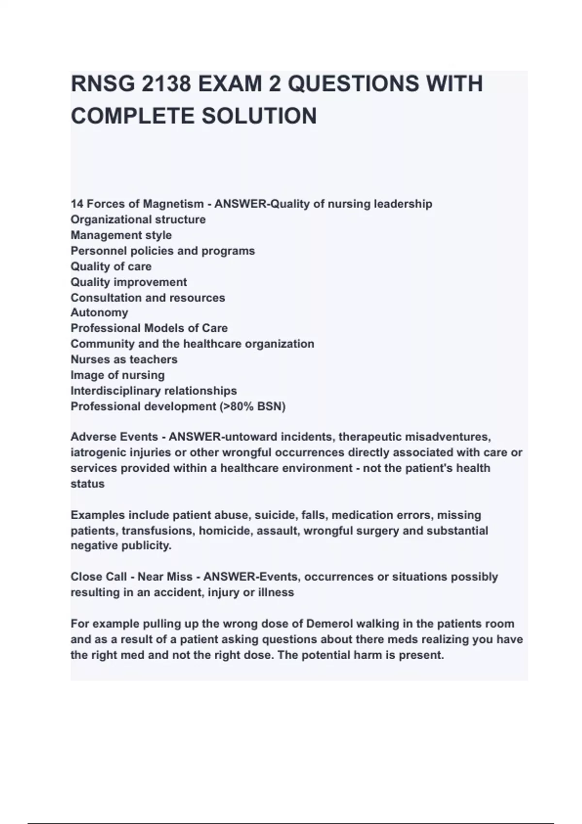 RNSG 2138 EXAM 2 QUESTIONS WITH COMPLETE SOLUTION