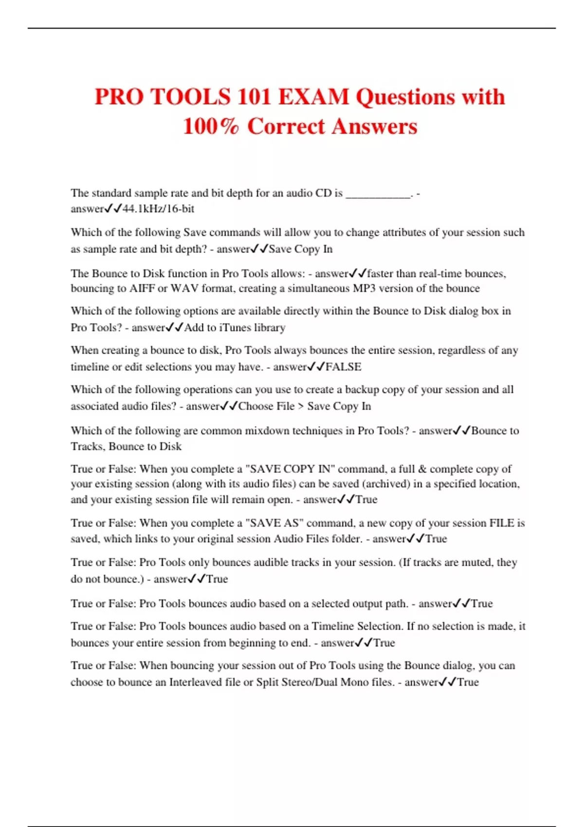PRO TOOLS 101 EXAM Questions with 100% Correct Answers
