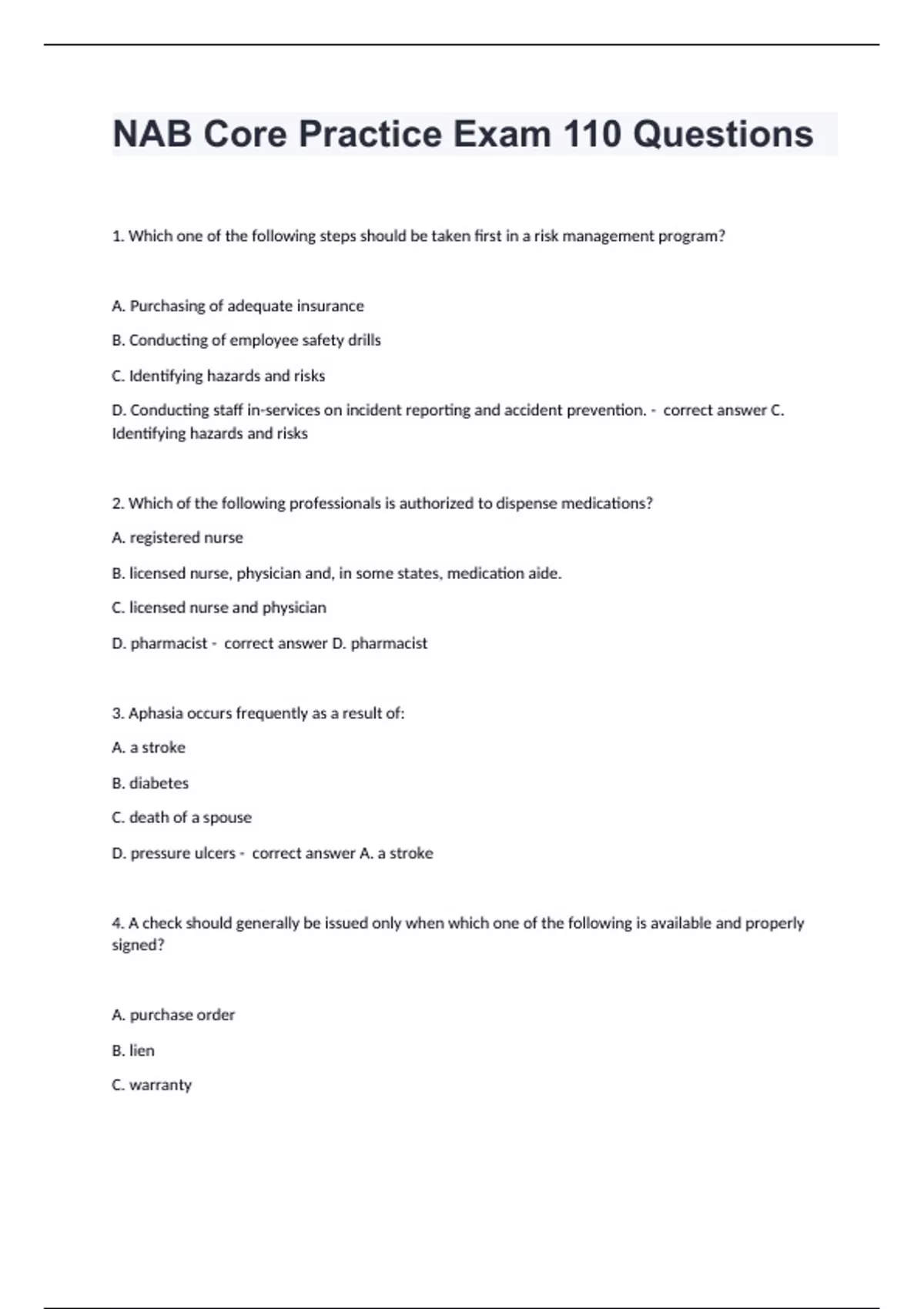 NAB: Finance & Business Practice Exam questions and verified answers NHA and Core Exam questions and verified answers 2024