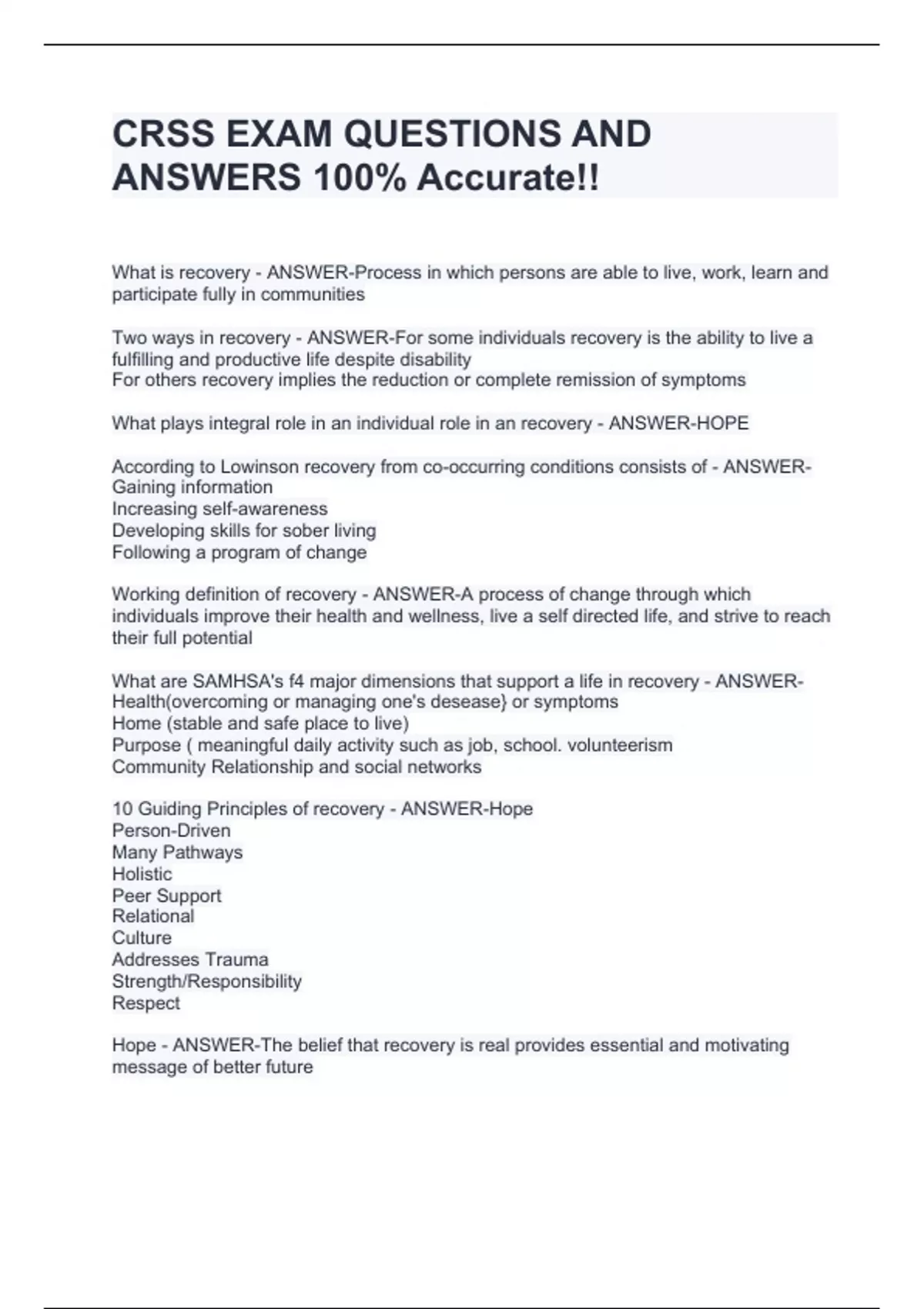 CRSS 3060 EXAM PACKAGE DEAL (BUNDLE) WITH COMPLETE QUESTIONS AND ANSWERS 100% ACCURATE