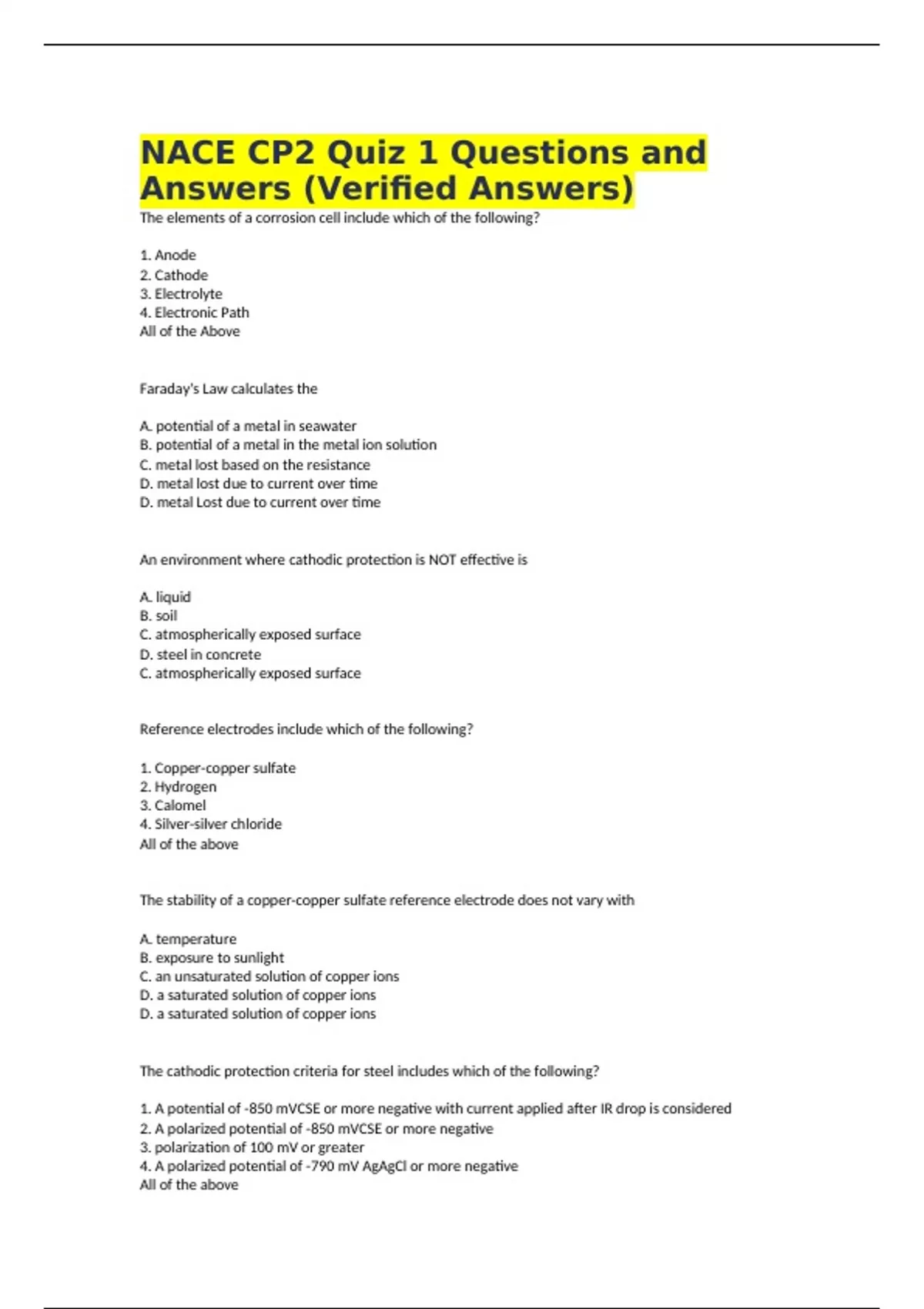 NACE CP2 Questions and Answers With All Quiz 100% Correct