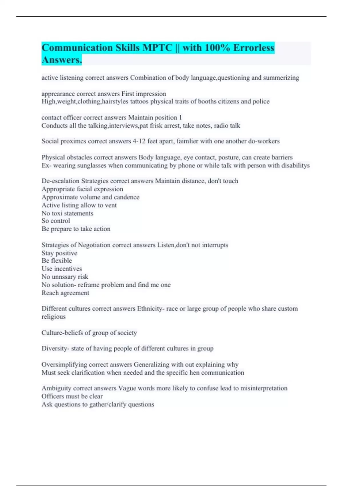Criminal Investigation MPTC || with 100% Verified Solutions. Use Of Force / DT (MPTC) || with 100% Correct Answers. Use of Force MPTC || All Correct. MPTC Study Guide || A Verified A+ Pass. MPTC Police Academy Review || All Questions Answered Correctly. MPTC MV Investigations || with A+ Guaranteed Solutions. MPTC Interviews and Interrogations || wi