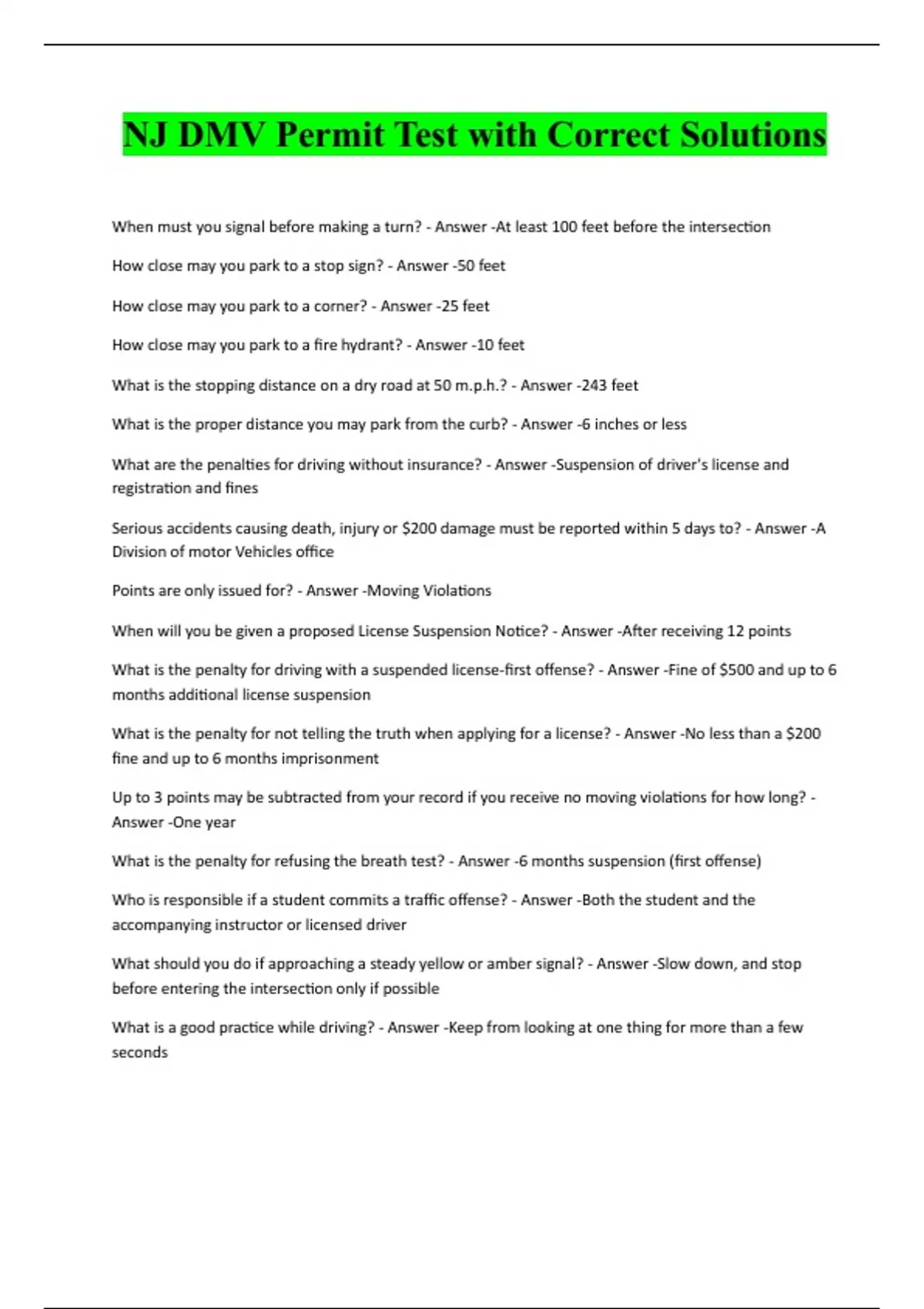New Jersey (NJ) DMV Permit BUNDLED Exams, Tests and Correct Solutions 2024 | 2025