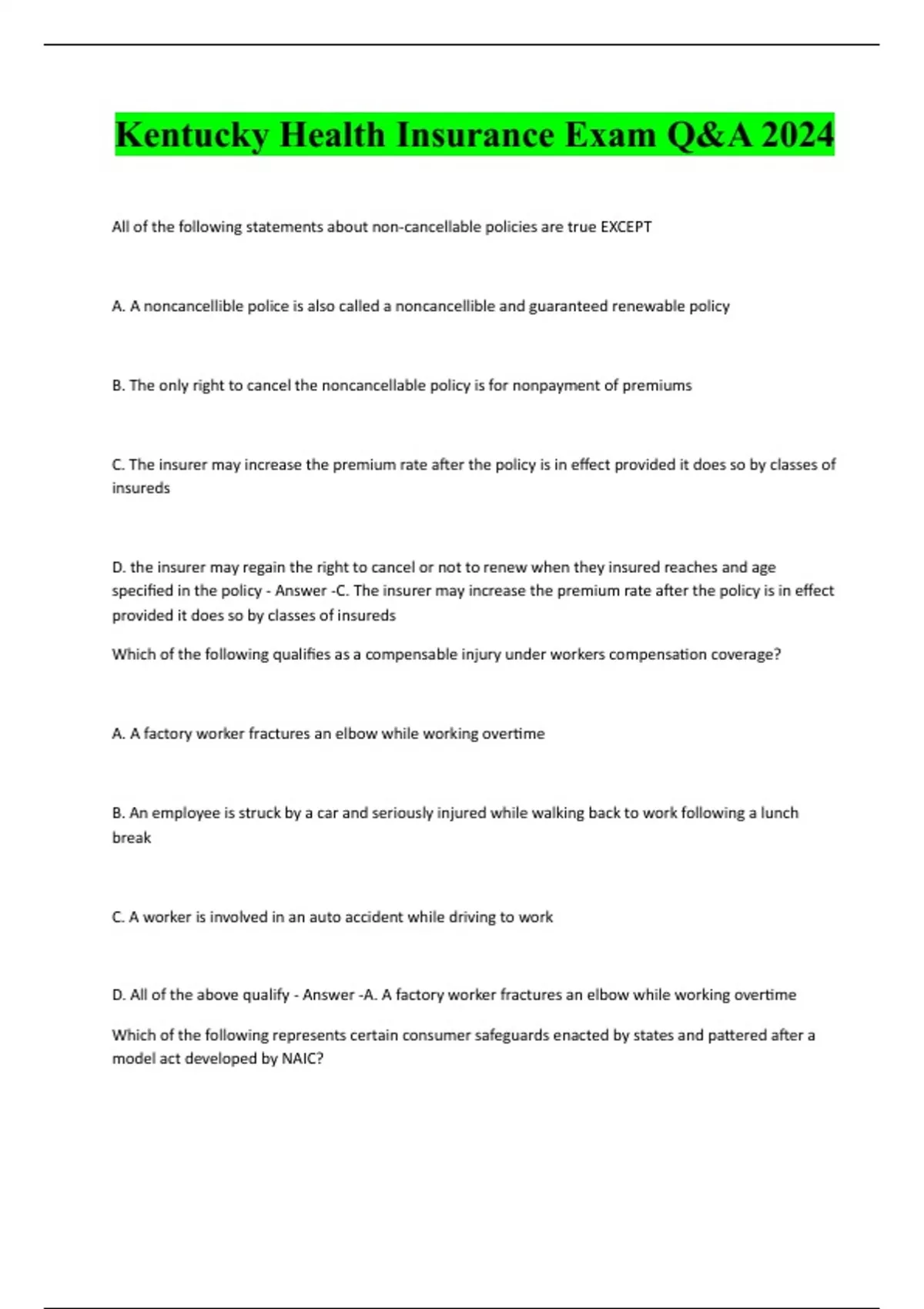 Kentucky Life & Health insurance BUNDLED Exams with Correct Solutions 2024 | 2025, Exam prep, life, health and accident insurance exam