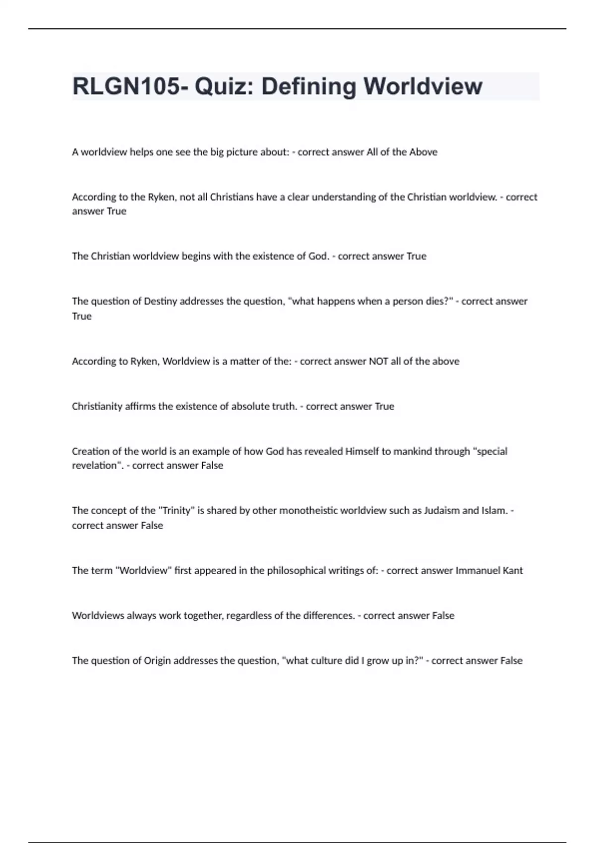 PACKAGE DEAL OF RLGN 105 QUESTIONS WITH COMPLETE SOLUTION 2024