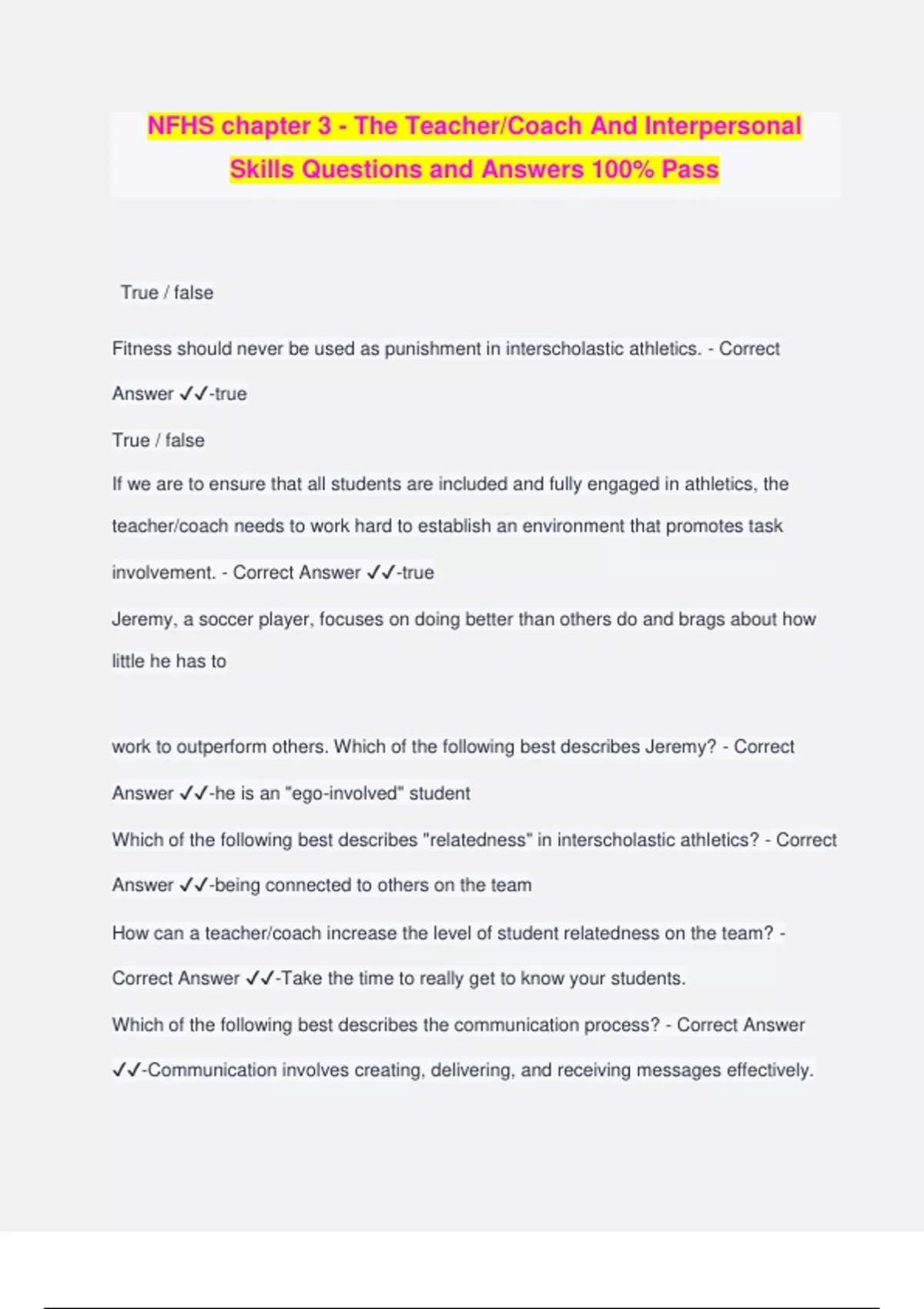 NFHS chapter 3 - The Teacher/Coach And Interpersonal Skills Questions and Answers 100% Pass
