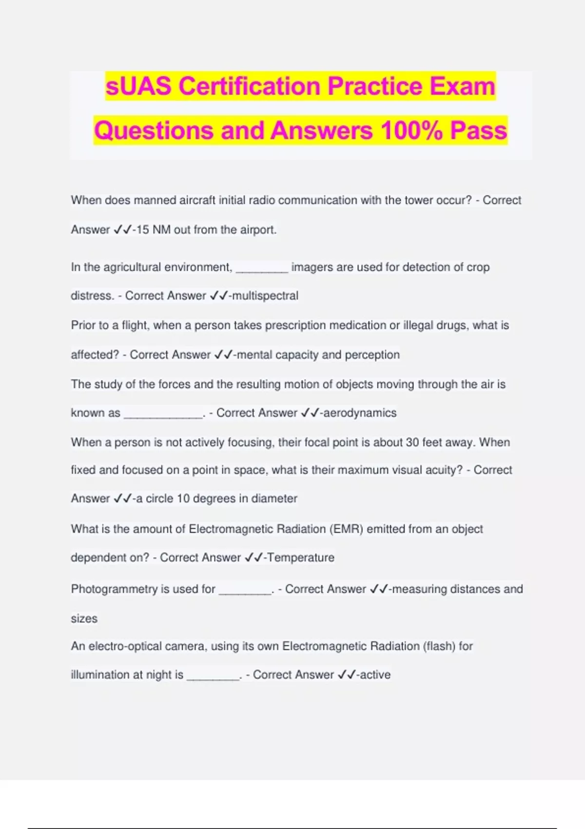 sUAS Certification Practice Exam Questions and Answers 100% Pass