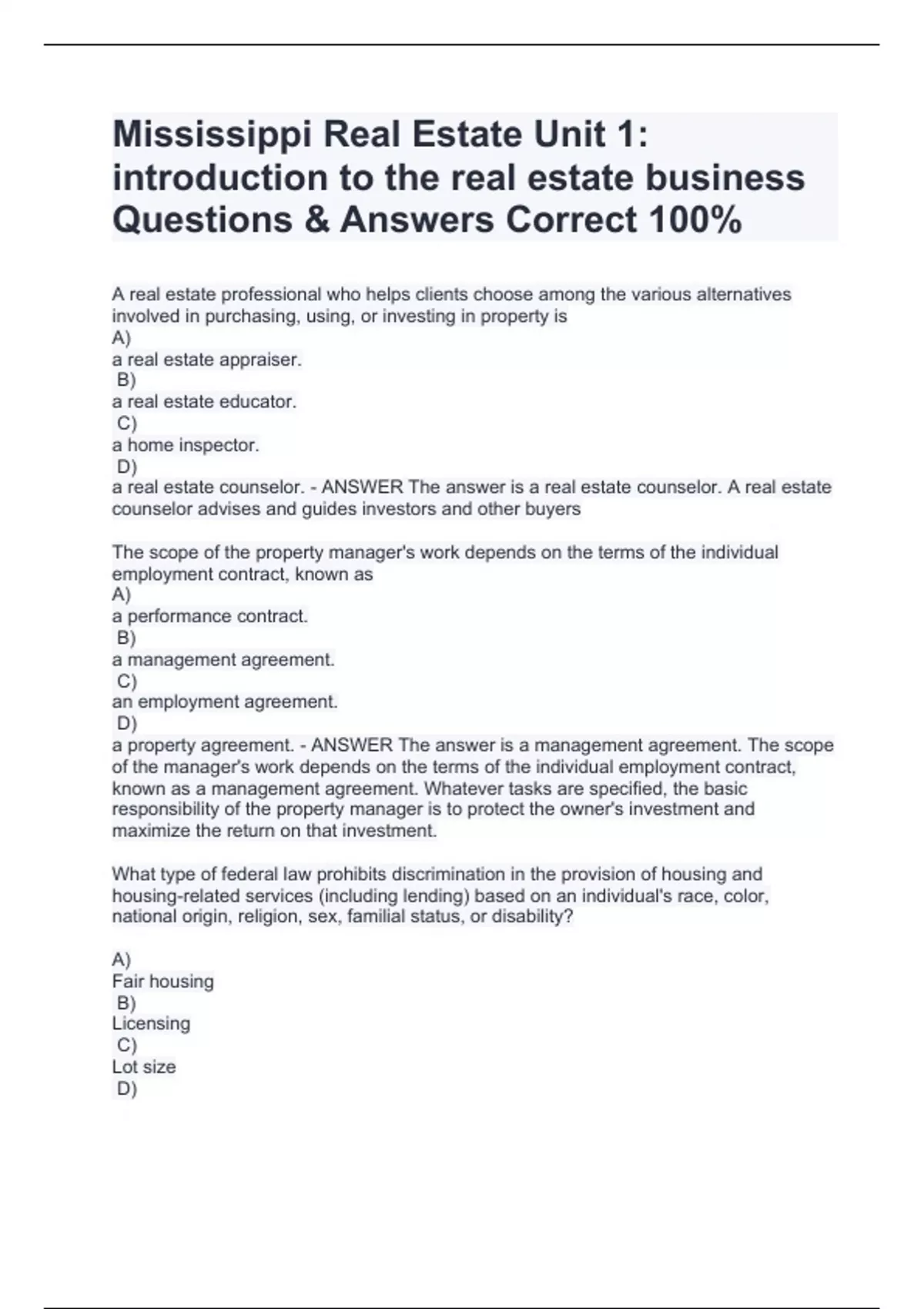 PACKAGE DEAL FOR:Mississippi Life and Health Insurance| QUESTIONS 100% SOLVED!!