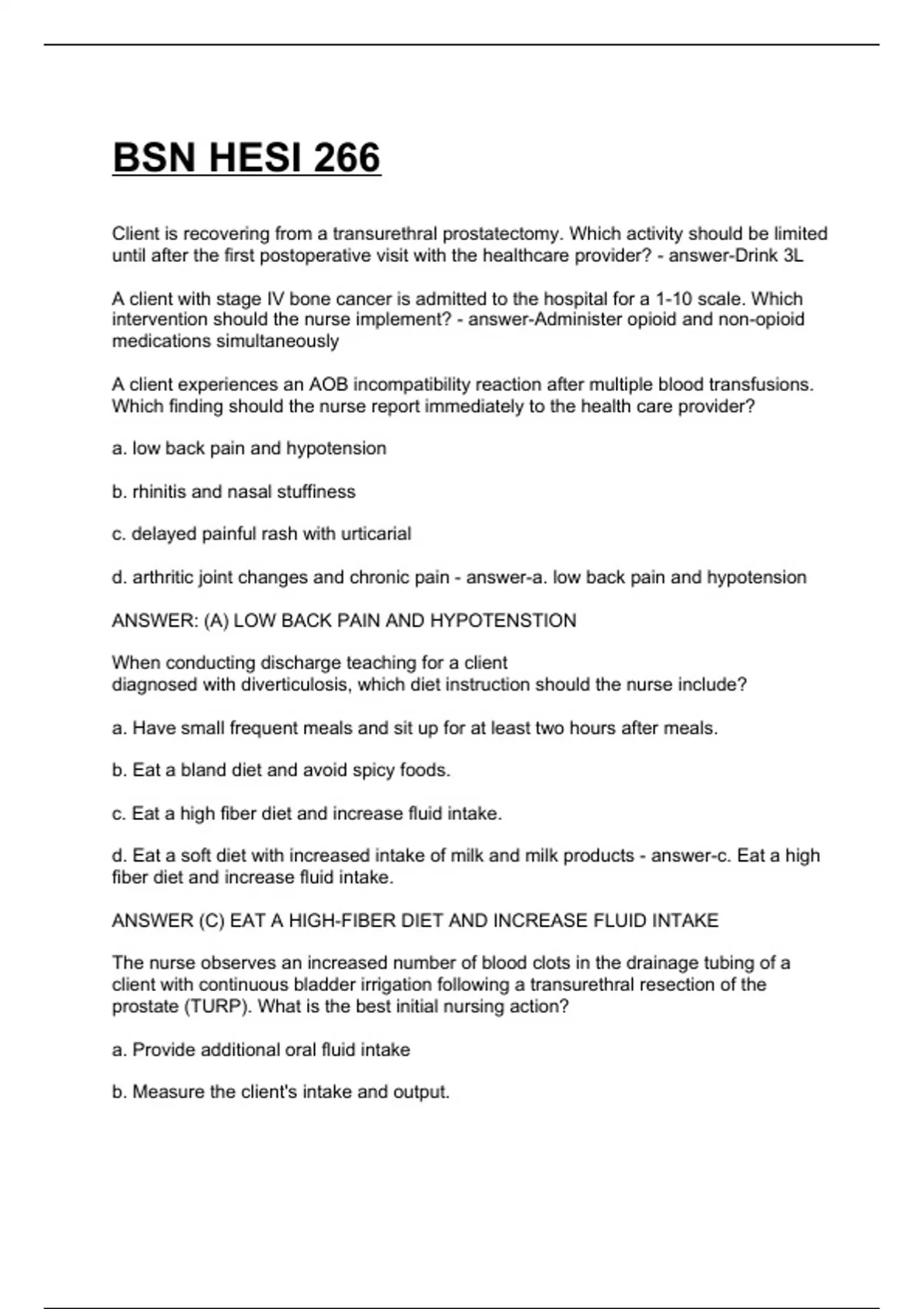 246 HESI Study Guide 2 Exam (elaborations) HESI V2 3 Exam (elaborations) HESI Assessment 4 Exam (elaborations) HESI 1 - V1 and V2 REVIEW - Health Assessment 1 5 Exam (elaborations) HESI Med-Surg 6 Exam (elaborations) hesi med-surg remediation questions 7 Exam (elaborations) HESI Med Surg Practice 8 Exam (elaborations) SAUNDERS HESI MED SURG