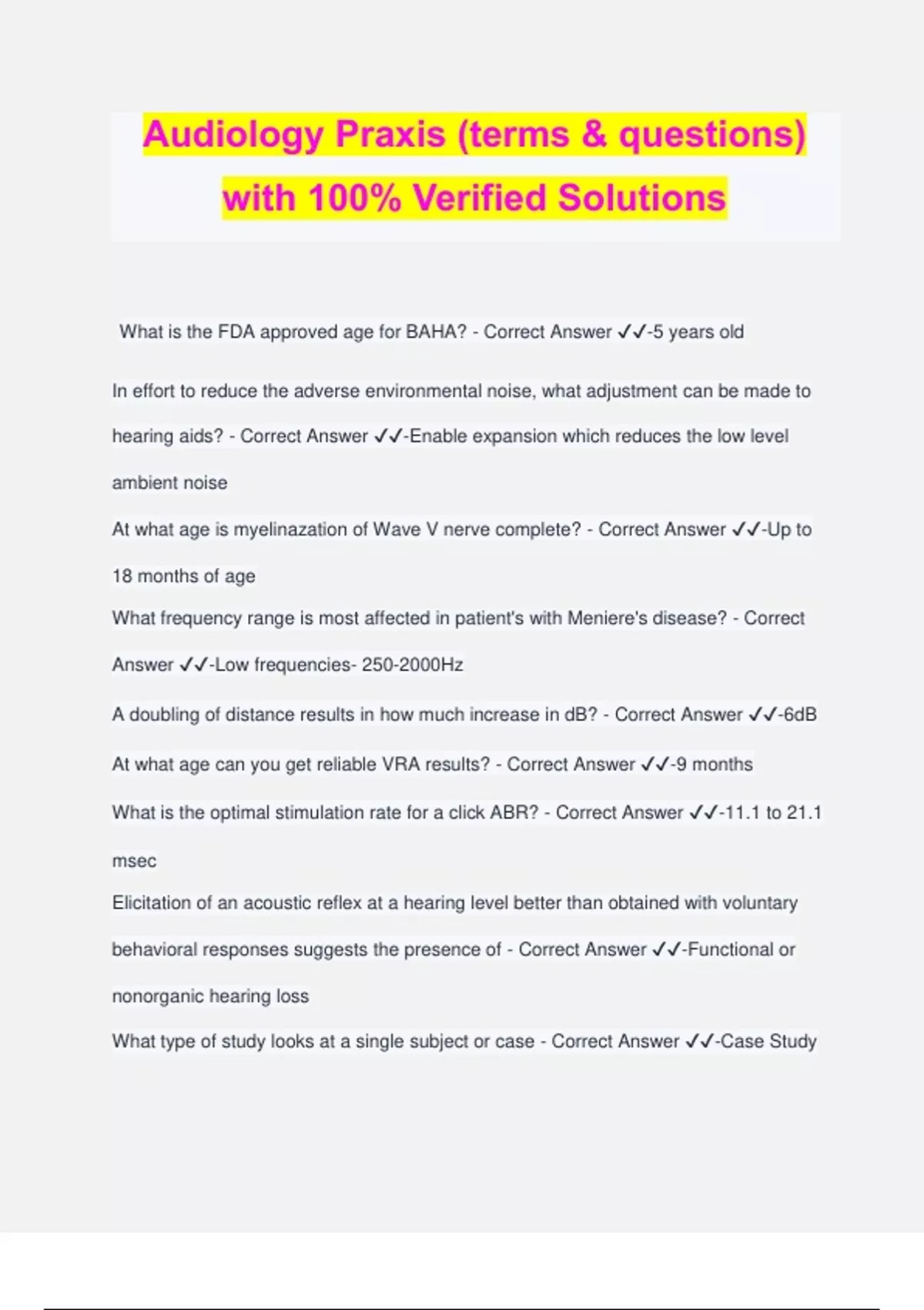 Audiology/ Audiology Praxis Bundled Exams Questions and Answers 100% Verified and Updated | Graded A