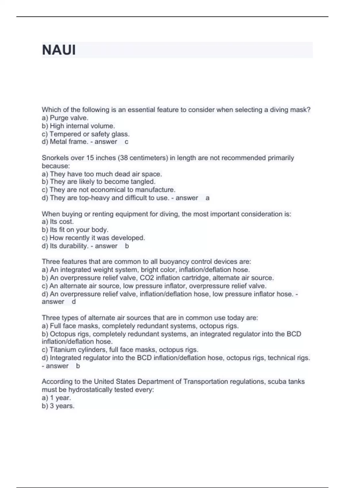 Exam (elaborations) Naui Scuba Test Questions and Answers 100% Accurate Exam (elaborations) NAUI Advanced Questions and Answers Graded A+ Exam (elaborations) NAUI Rescue Diver Questions with correct Answers 2024 Exam (elaborations) NAUI Scuba Exam Questions and Answers Questions and Answers Graded A+ Exam (elaborations) NAUI open water cou