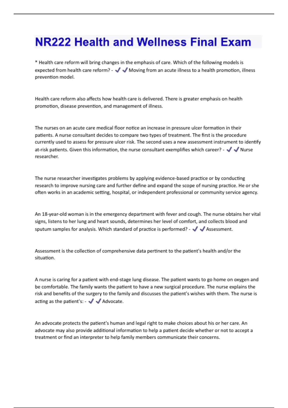 NR222 Health and Wellness Final Exam (100% correct and graded A+)