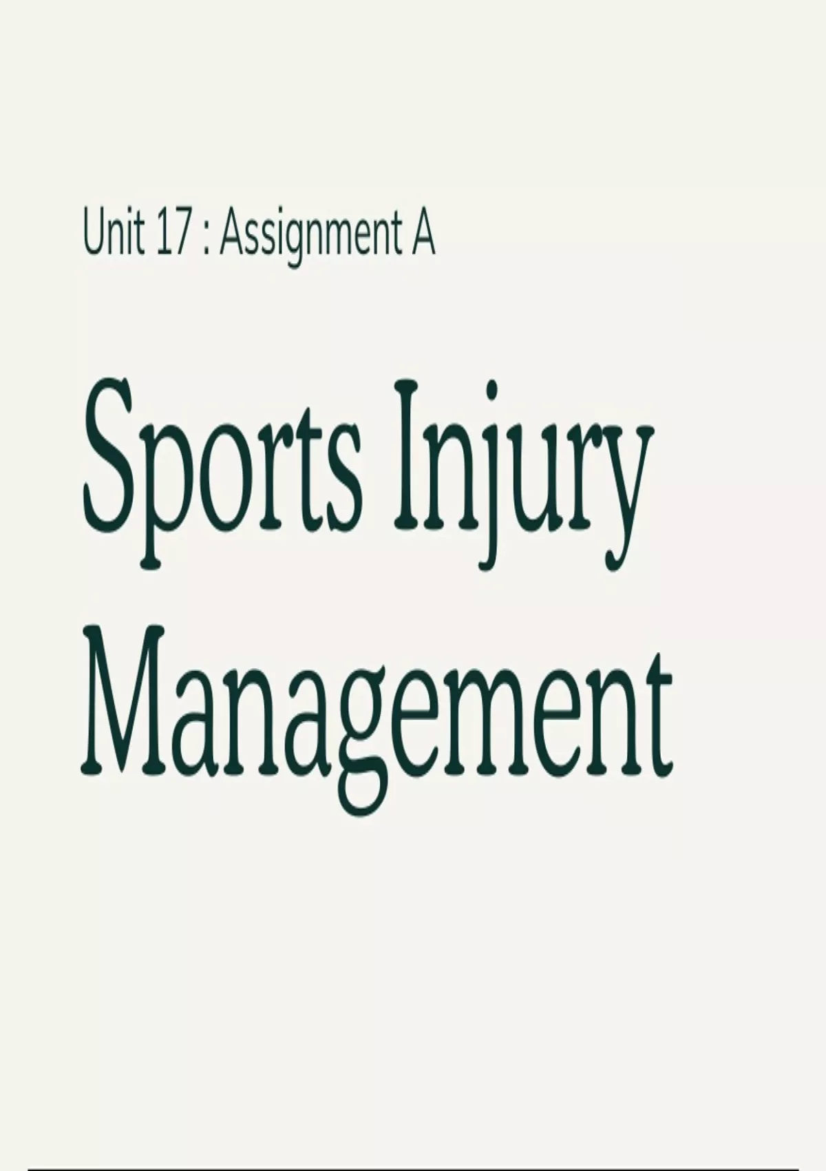 Unit 17 : Sports Injury Management - Blueprint for Assignments A, B & C - BTEC Sport 2016