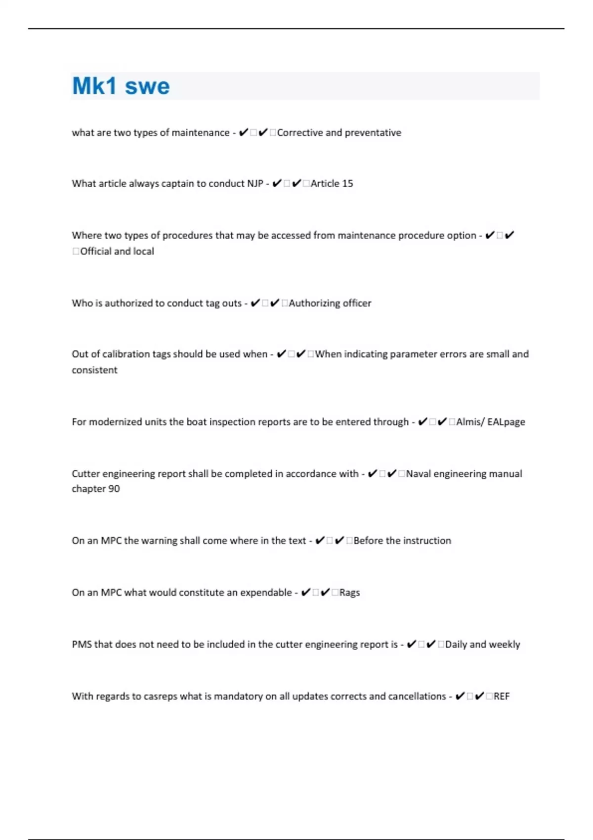MK1 SWE-2021 QUESITONS, FOR 2022 SWE|226 Questions with 100% Correct Answers | Verified | Latest Update