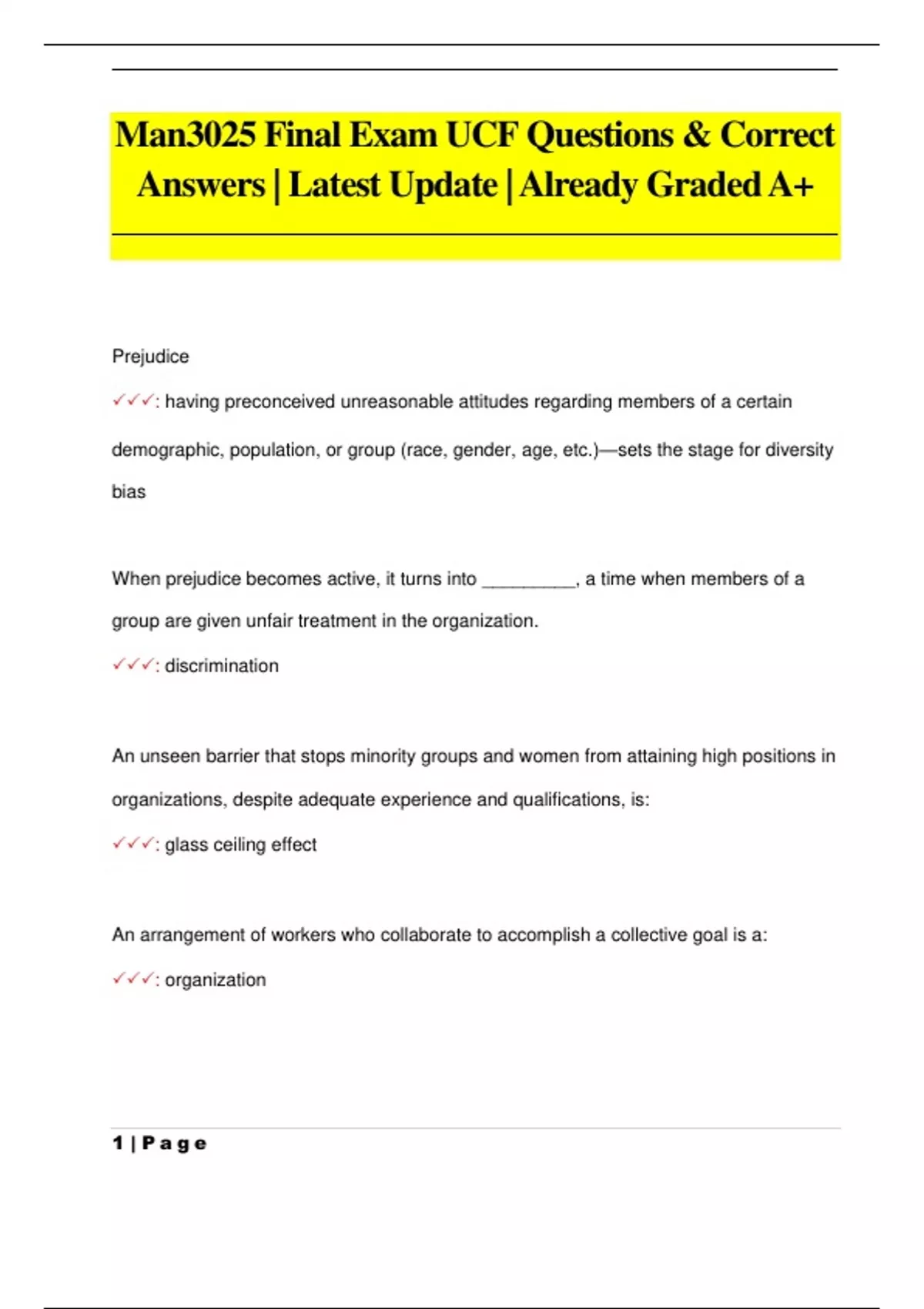 MAN 3025 Exams Package Questions & Correct Answers | Latest Update |Already Graded A+