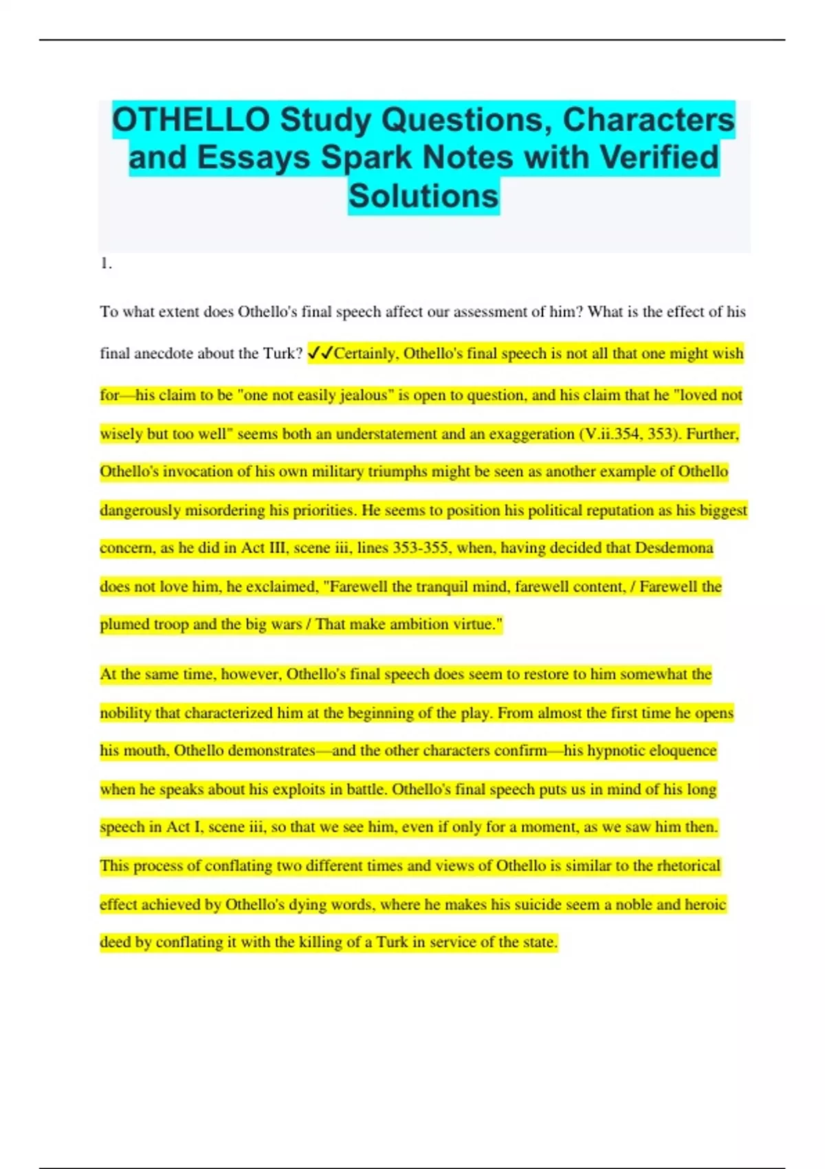 Othello Bundled Exams Questions and Answers Latest Updates Already Passed