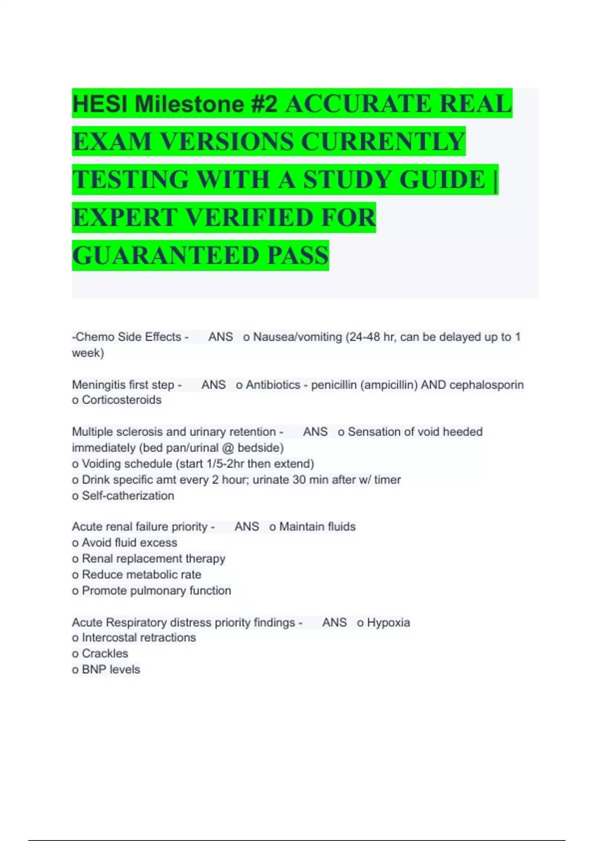 HESI Milestone #2 ACCURATE REAL EXAM bundle VERSIONS CURRENTLY TESTING WITH A STUDY GUIDE | EXPERT VERIFIED FOR GUARANTEED PASS